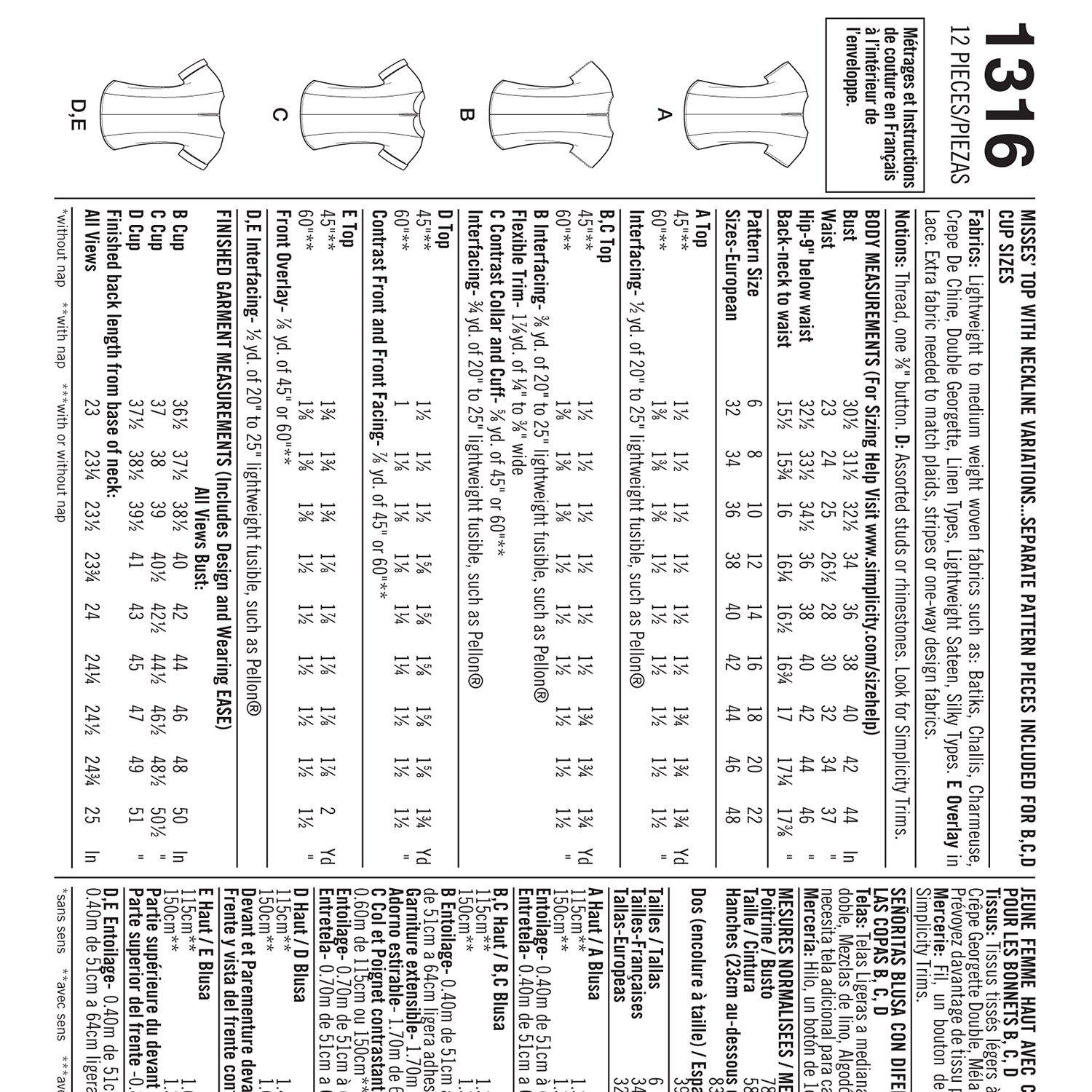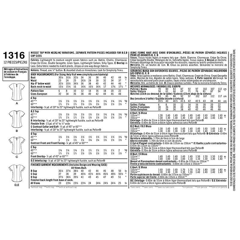 SimplicityWomen's Tops Sewing Patterns, 1316
