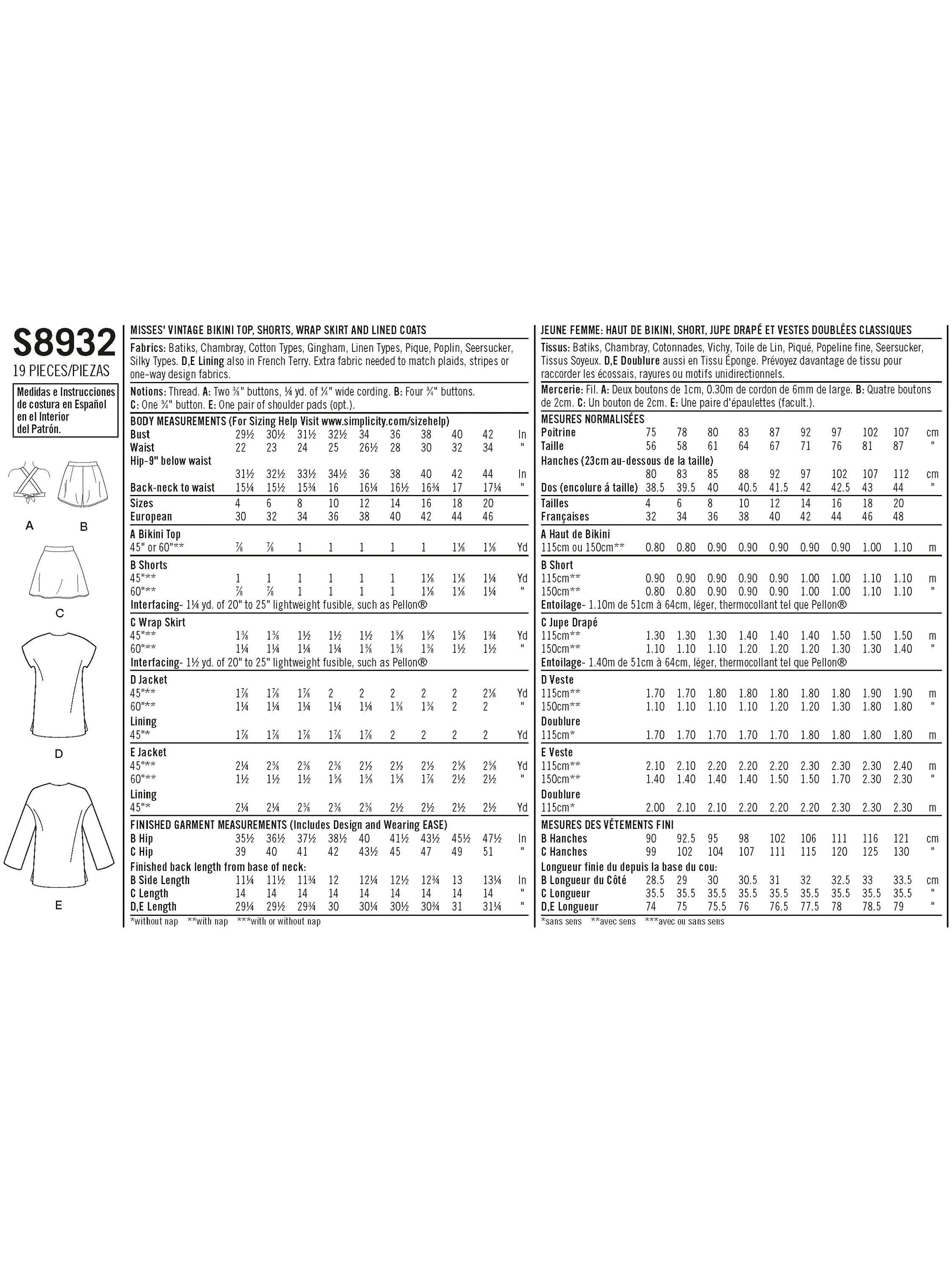 SimplicityWomen's Vintage Beachwear Sewing Pattern, 8932