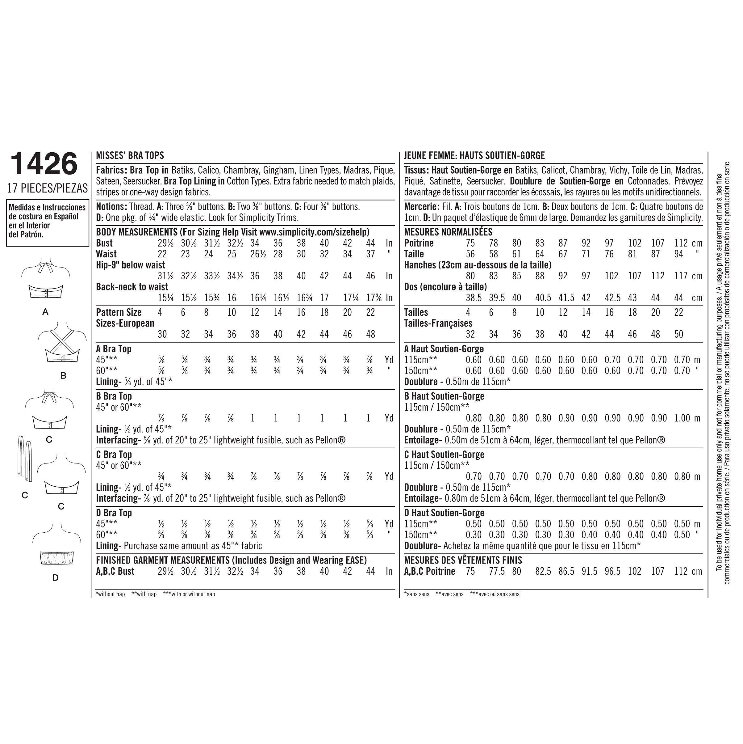 SimplicityWomen's Vintage Bra Top Sewing Pattern, 1426