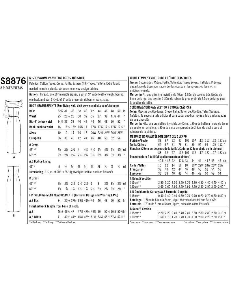 SimplicityWomen's Vintage Dress Sewing Pattern, 8876