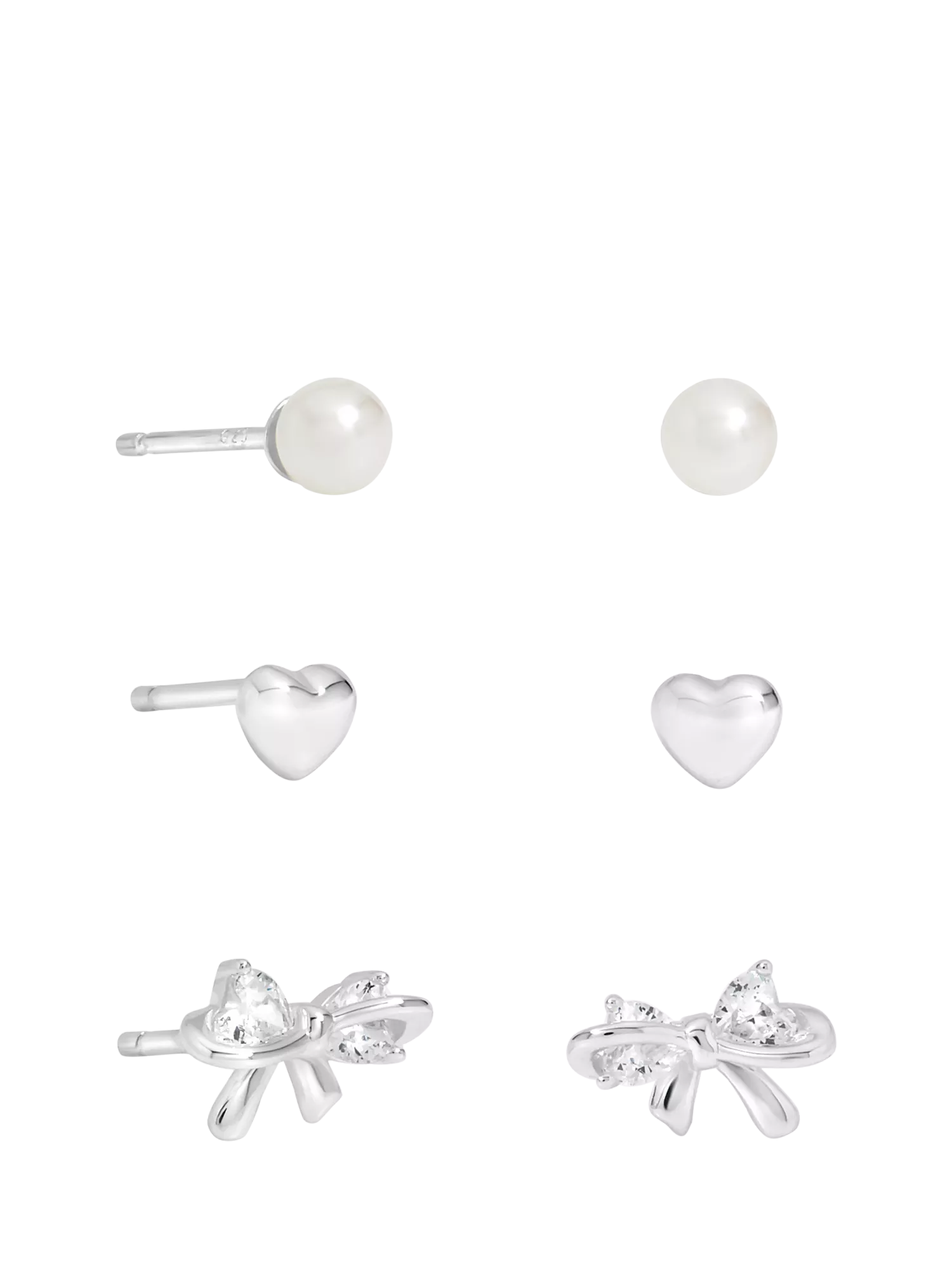 Simply SilverSimply Pearl/Heart/Bow Stud Earrings, Silver