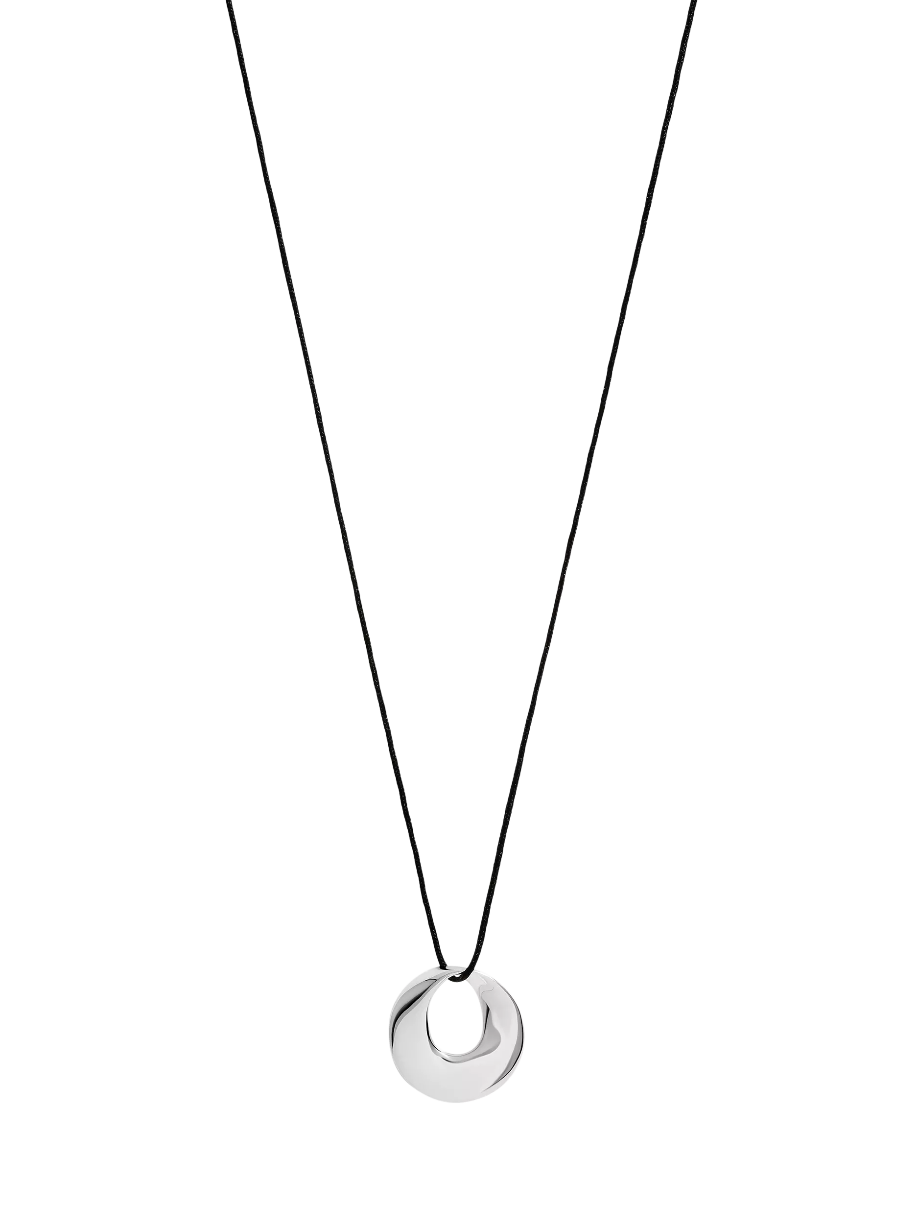 Bring a touch of elegance to your look with this open pendant, showcasing a beautifully crafted sterling silver heart design on a distinctive cord chain. A perfect piece to elevate any look and make a statement.
