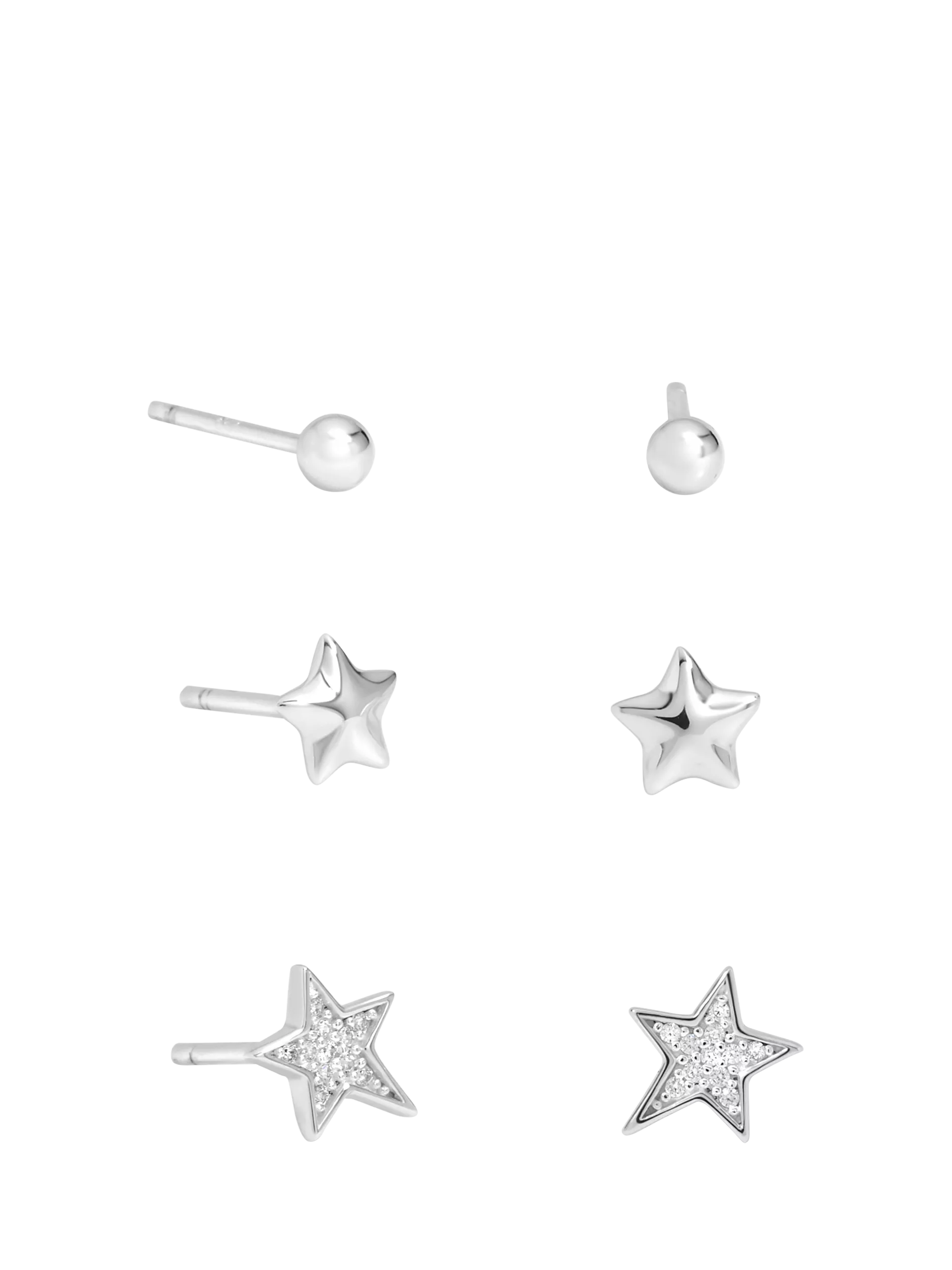 Simply SilverCubic Zirconia Celestial Stud Earrings, Pack of 3, Silver