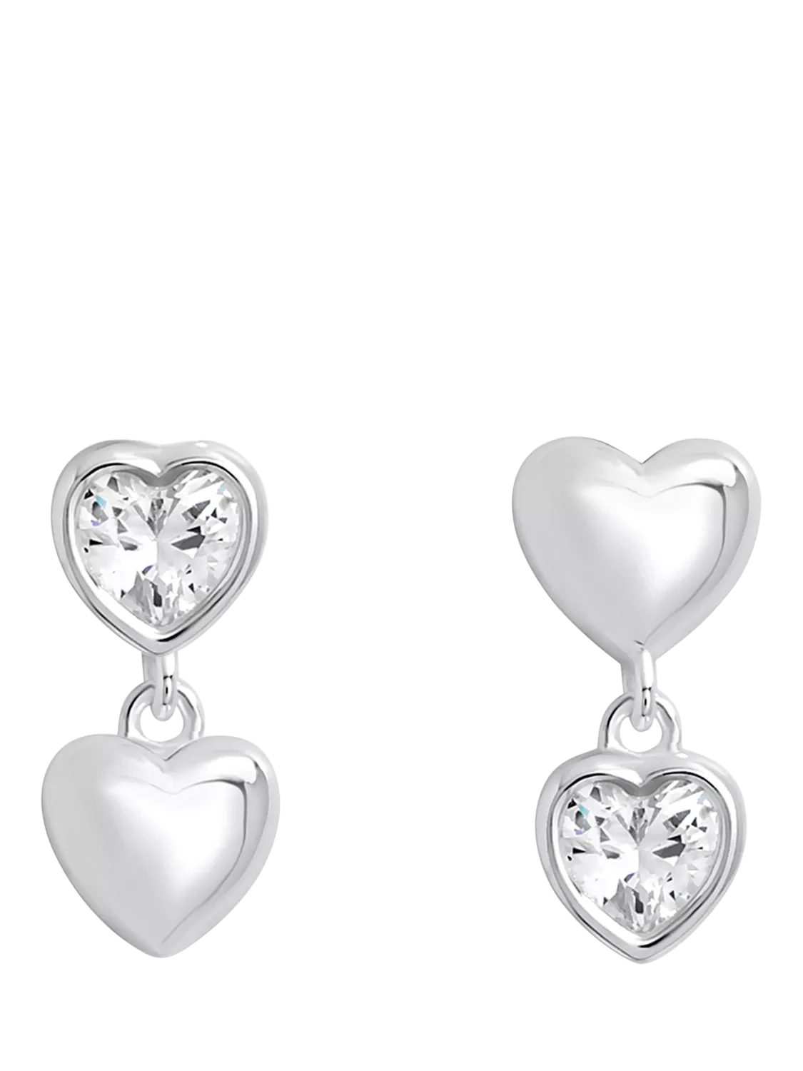 Impeccably designed by Simply Silver, these polished and cubic zirconia heart-shaped earrings fall to a simple but elegant drop design. Suitable for pierced ears only, they sit on post fittings.