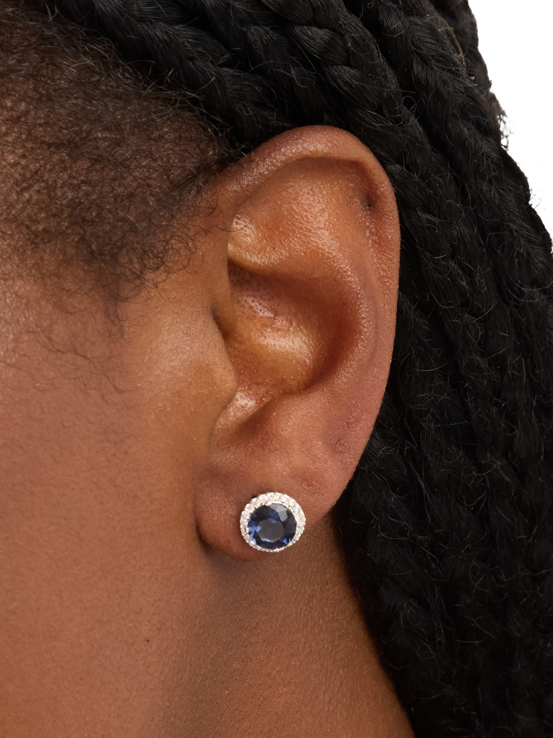 Curated by Simply Silver, these halo stud earrings allow simplicity and elegance to take centre stage with blue-toned sapphire cubic zirconia stones. With post fittings, they are for pierced ears only.