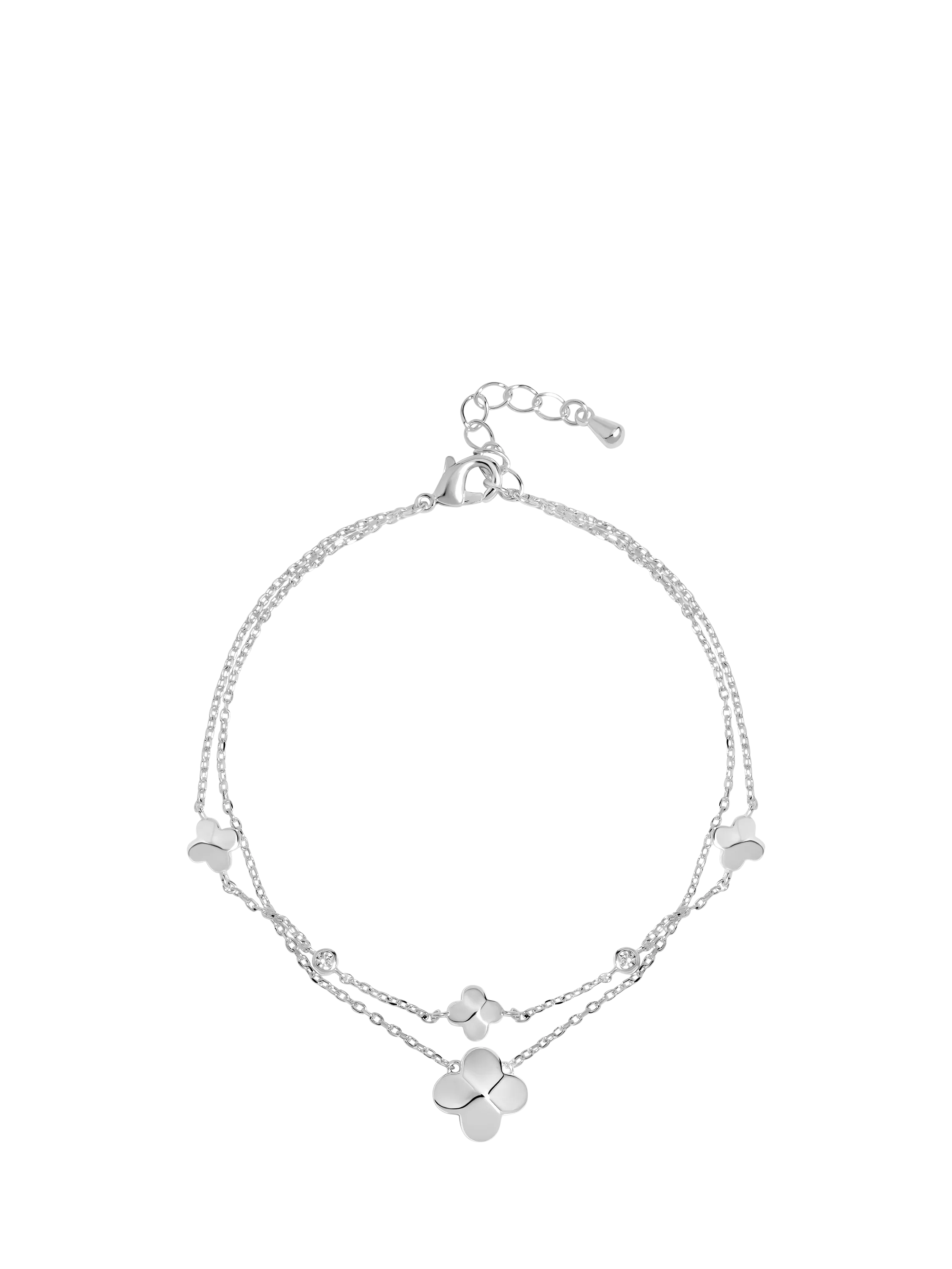 Simply SilverDouble Row Bezel Station Clover Bracelet