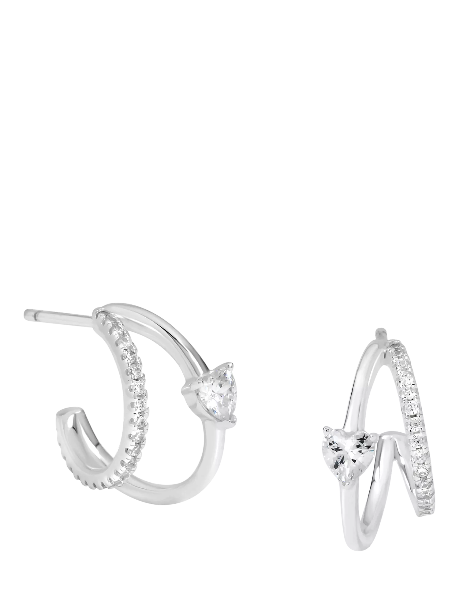 A stunning design by Simply Silver, these double row heart hoop earrings feature cubic zirconia stones for added sparkle. With post fittings, they are for pierced ears only.