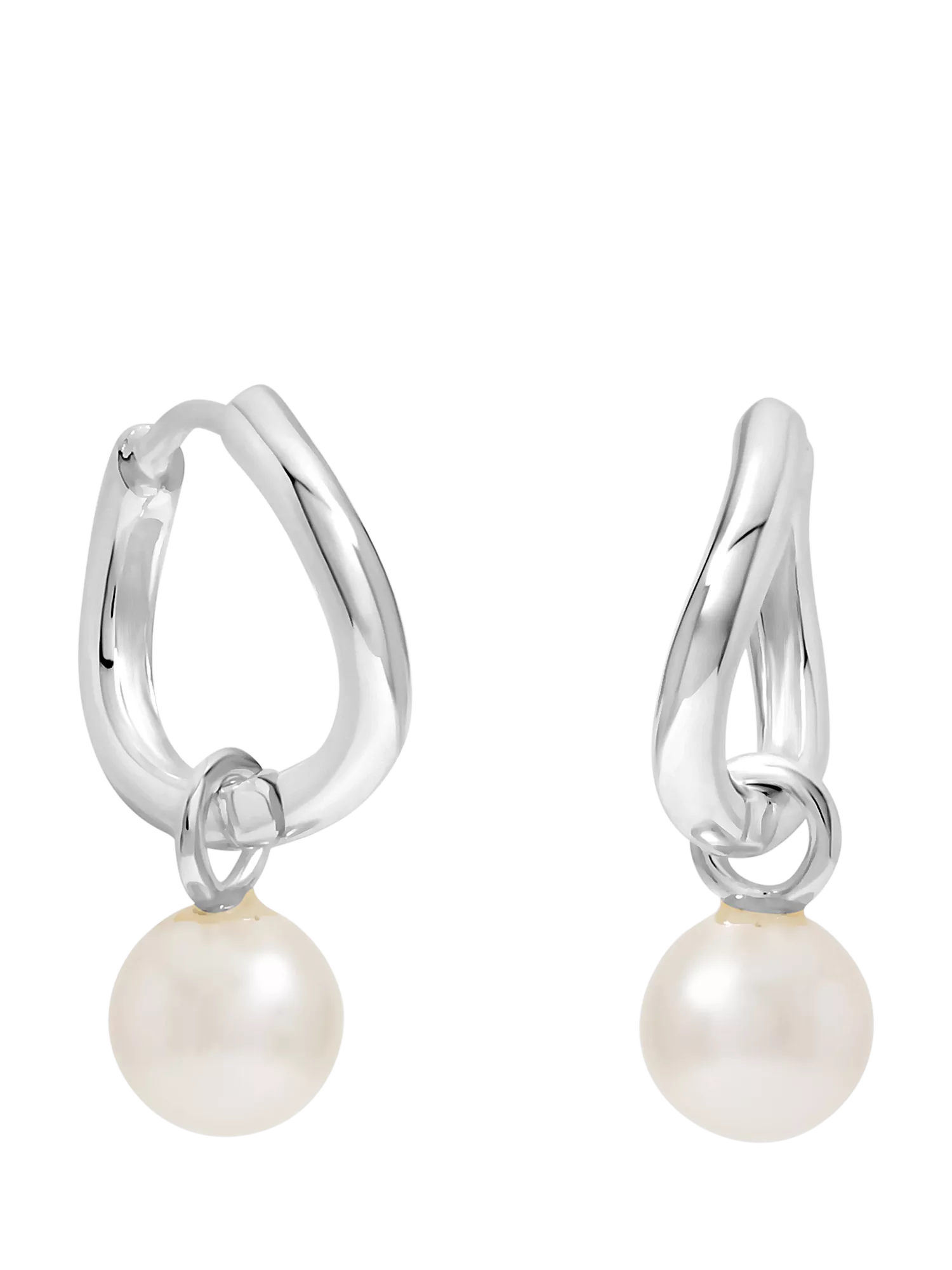 Simply SilverFluid Hoop with Pearl Earrings, Silver