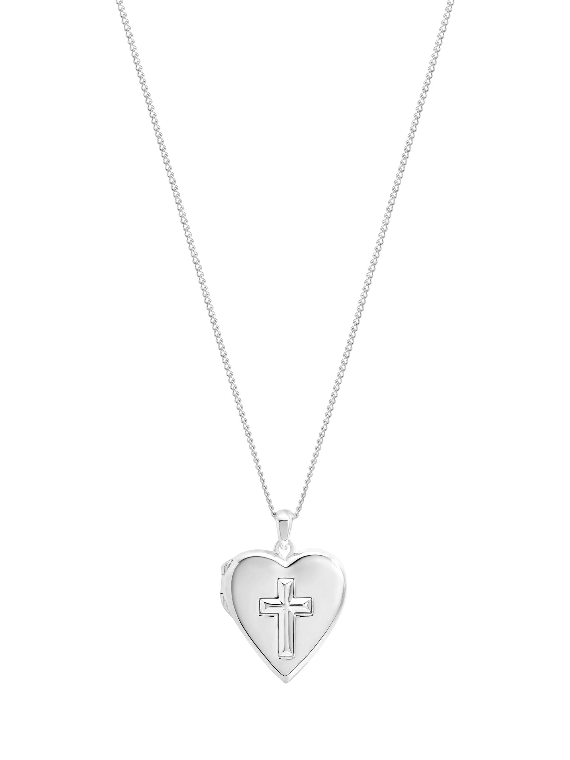 The Simply Silver Heart Cross Locket is a meaningful keepsake that combines faith and sentiment. Crafted in polished sterling silver plating, the heart shaped locket features a delicate cross detail and opens to hold a small photo or memento, making it a personal and cherished piece. Presented in a drawer box, ready to gift, it's the perfect choice for baptisms, confirmations, or as a thoughtful gift for someone special. A timeless keepsake to treasure for years to come.