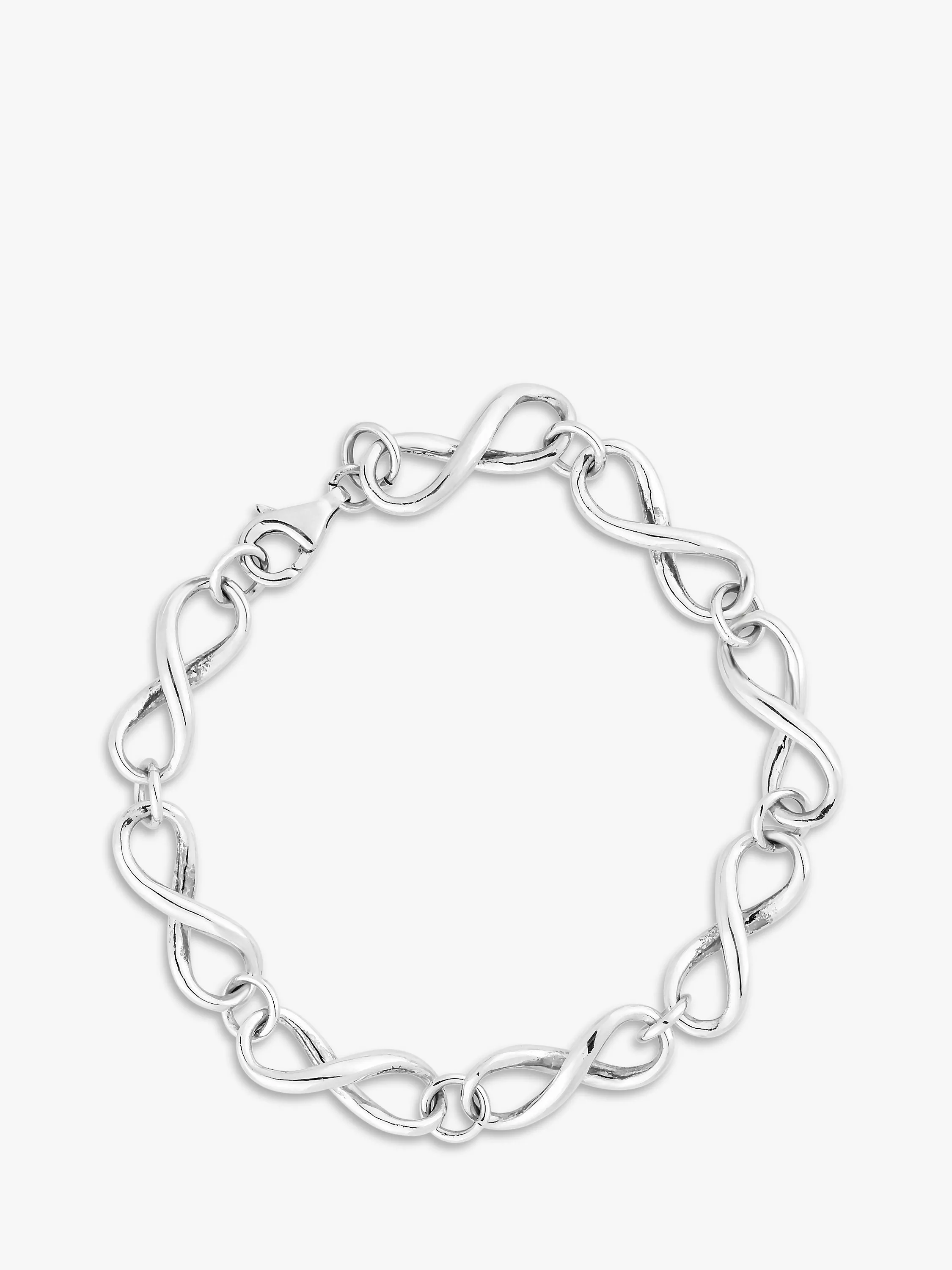Full of infinite possibilities, this bracelet from Simply Silver is made of chain links designed into the shape of the infinity symbol. It is secured with a lobster clasp and is part of the brand's iconic Simply Silver collection that boasts fine, contemporary and meaningful 925 Sterling Silver jewellery.