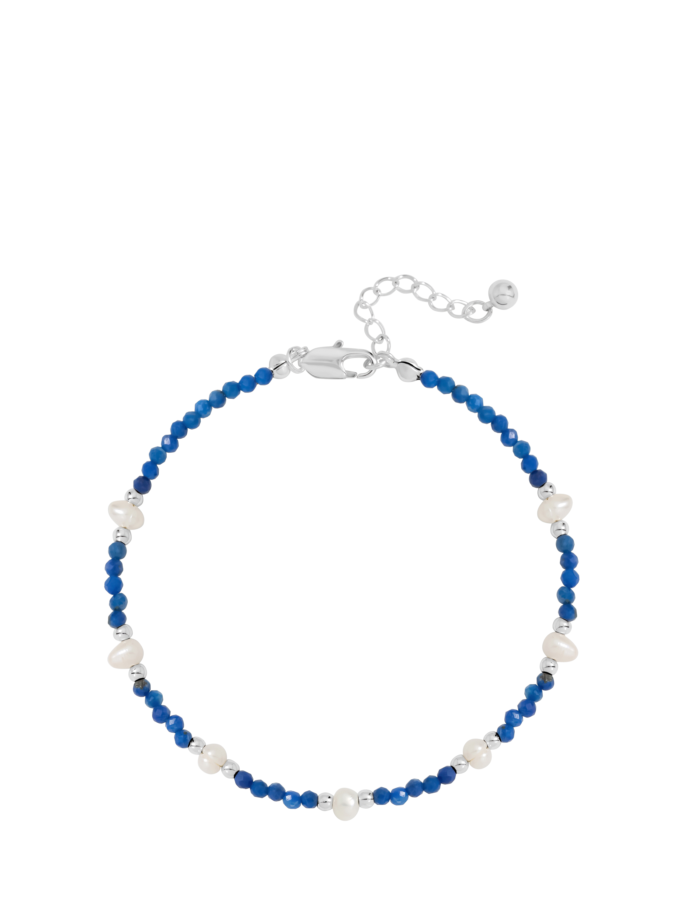 The Simply Silver Lapis and Pearl Bracelet adds a subtle touch of summer to any outfit. Featuring soft Turquoise stones paired with freshwater pearls, it has a fresh and breezy look that works perfectly for warm weather days. Wear it alone for a simple accent or layer with other bracelets for a relaxed, effortless style. Ideal for everyday summer wear, it's a versatile piece that complements both casual and slightly dressier looks.