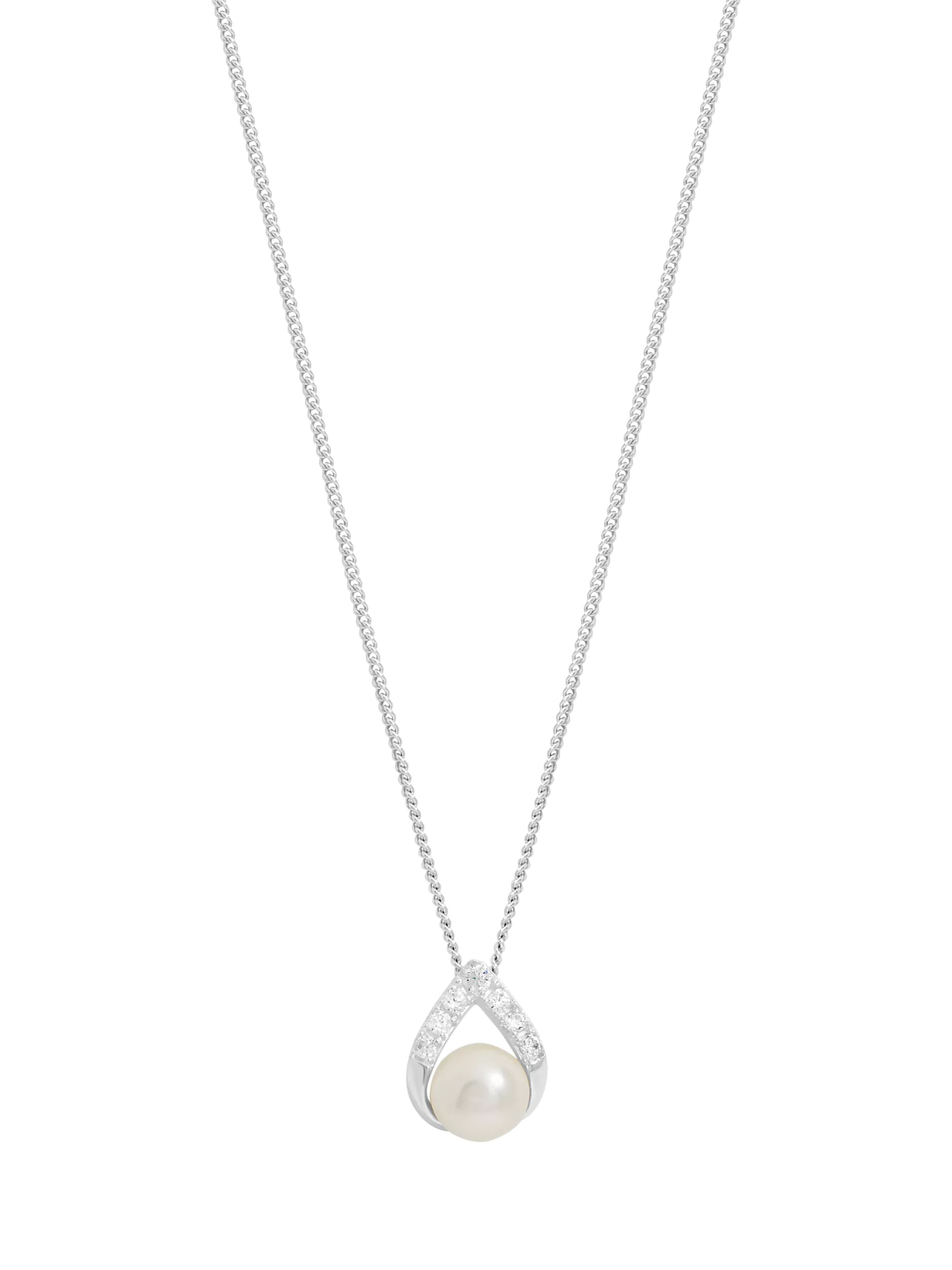 A thoughtful addition to your jewellery collection, this pendant from Simply Silver brings beautiful balance of soft shimmer and refined design. Featuring a single lustrous pearl paired with pavé-set cubic zirconia, creating a pendant that catches the light with every movement. Finished with a lobster claw clasp.