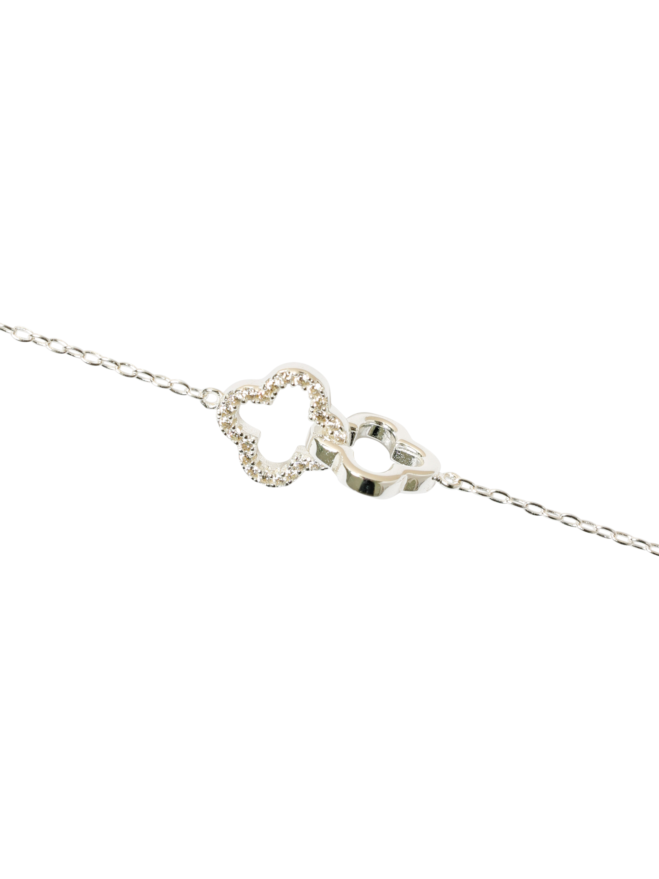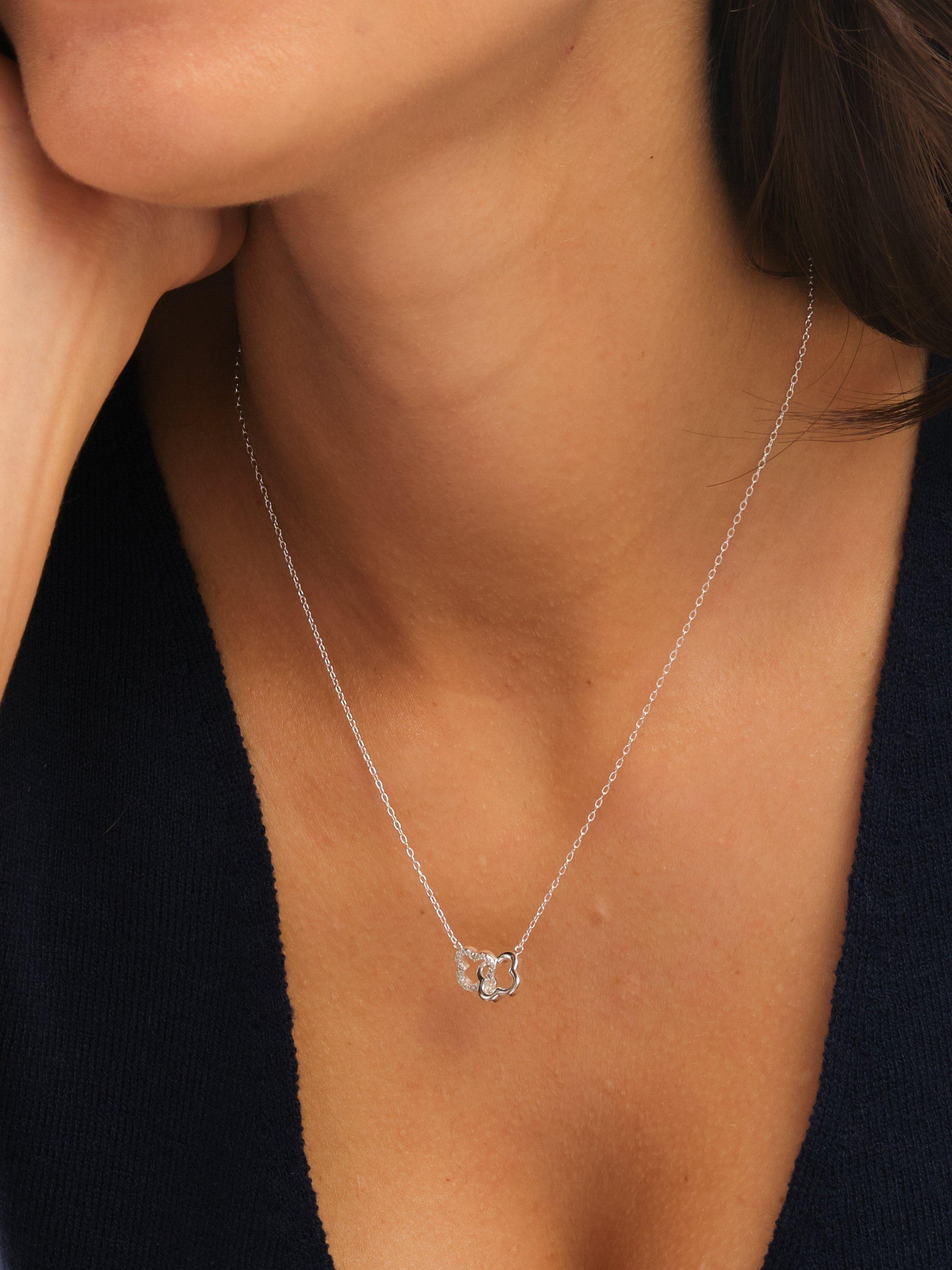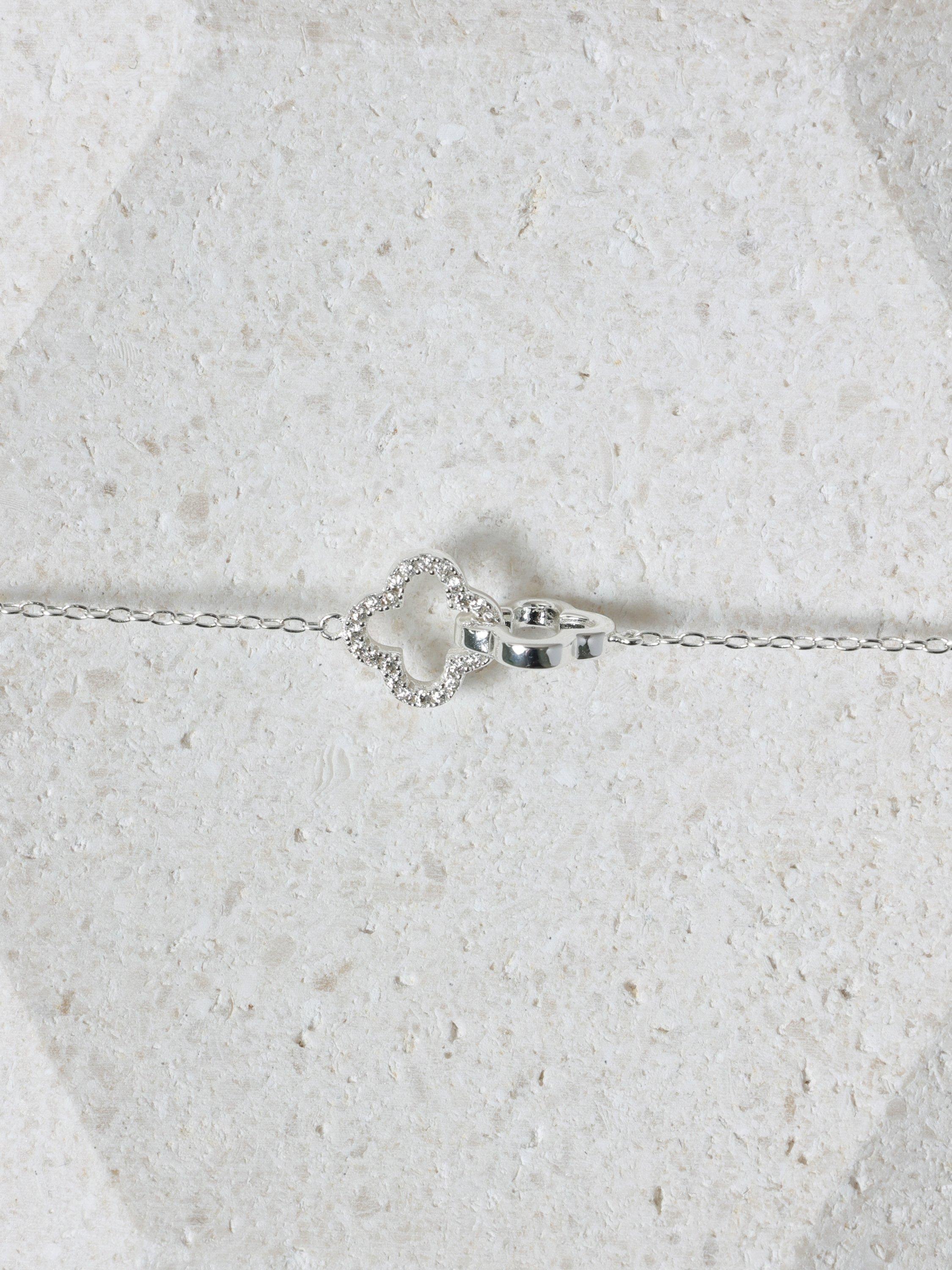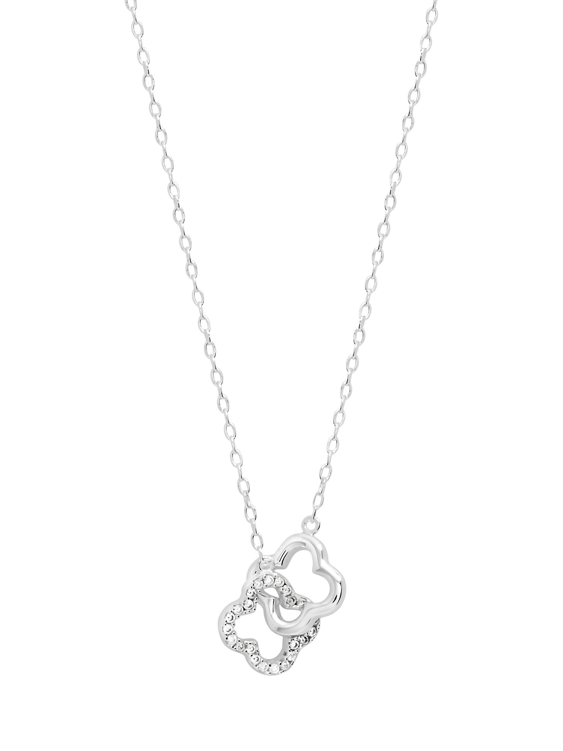 This sterling silver necklace features a series of interlinked clover charms and pave set stones for a subtle sparkle. This timeless piece is perfect for everyday wear or layering with your favourite chains.