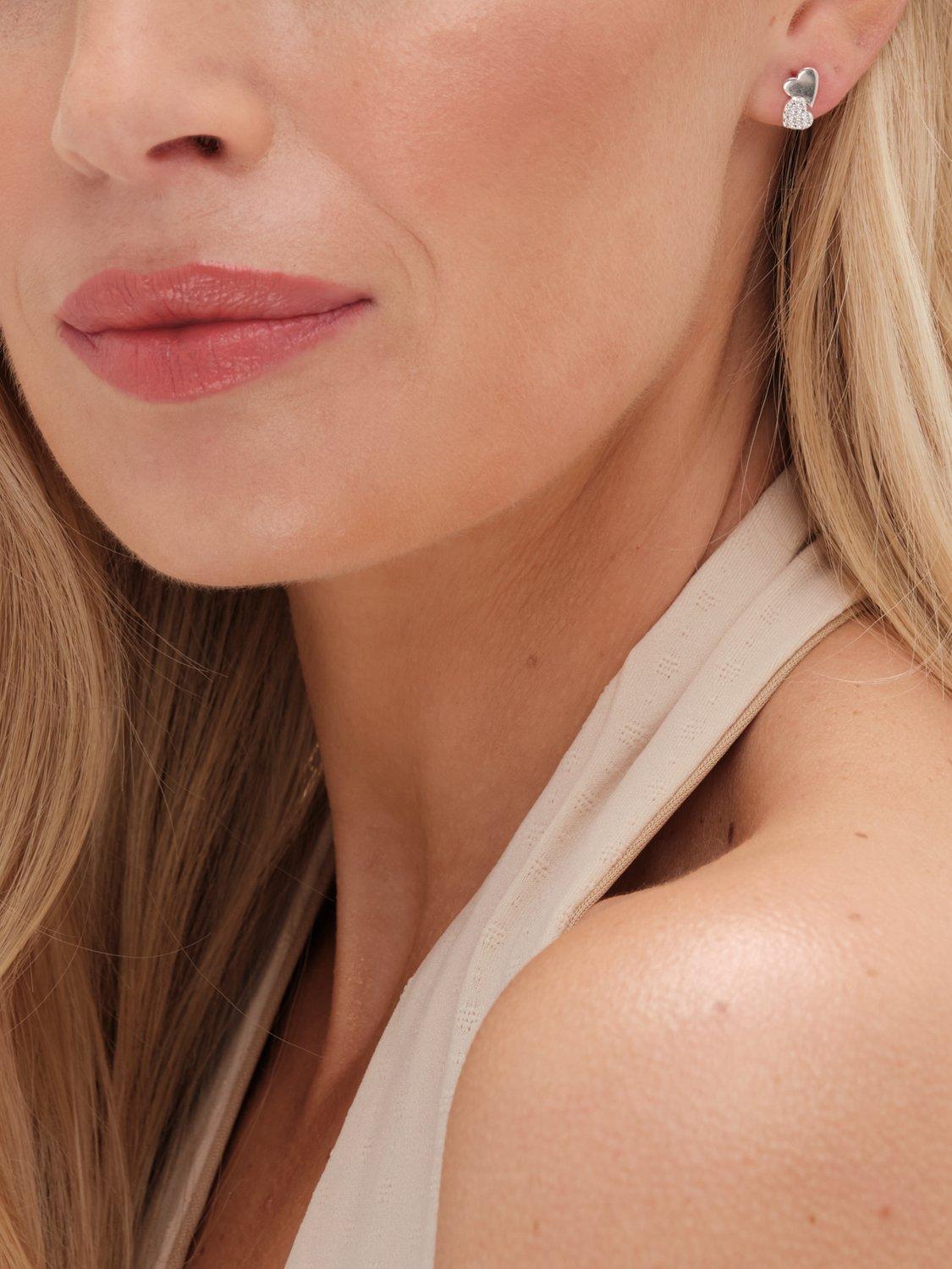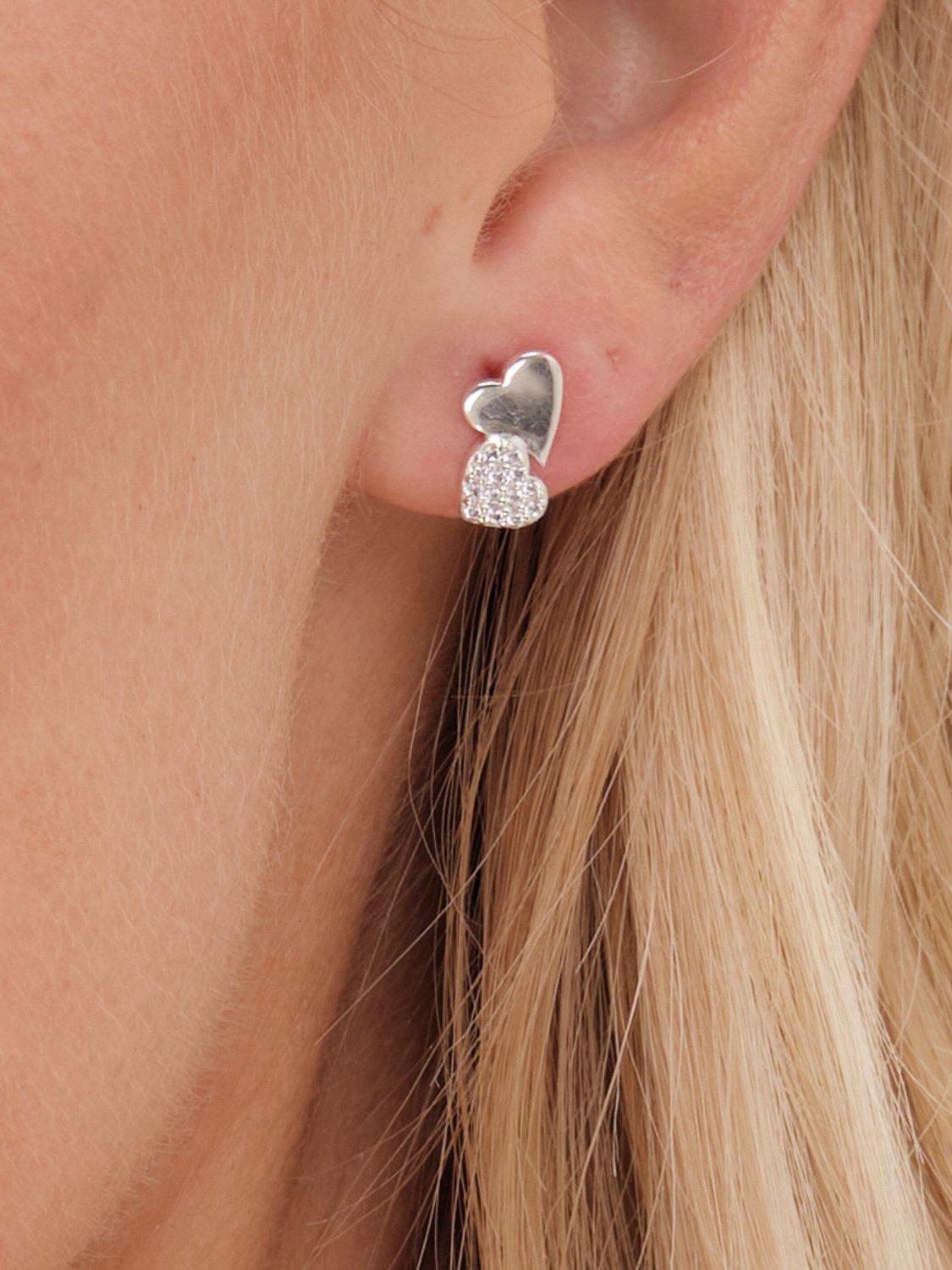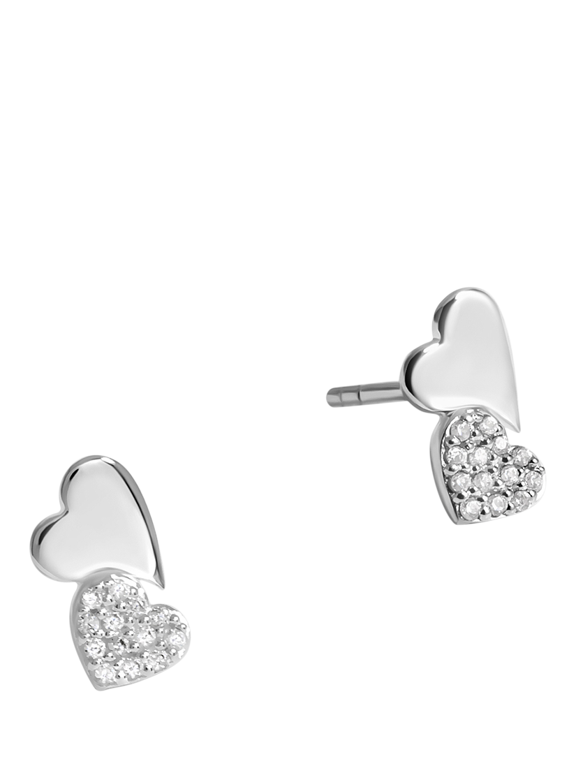 Simply SilverPave Double Drop Heart Stud Earrings, Silver