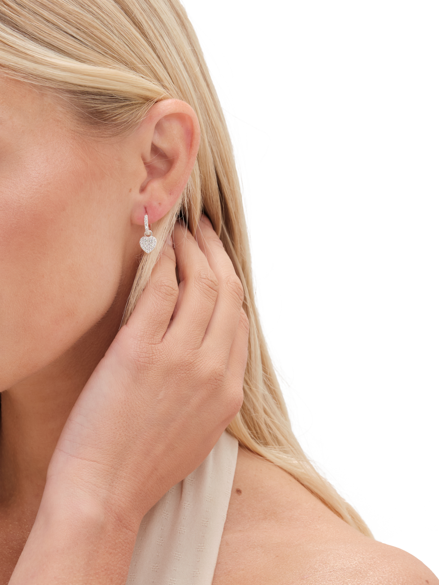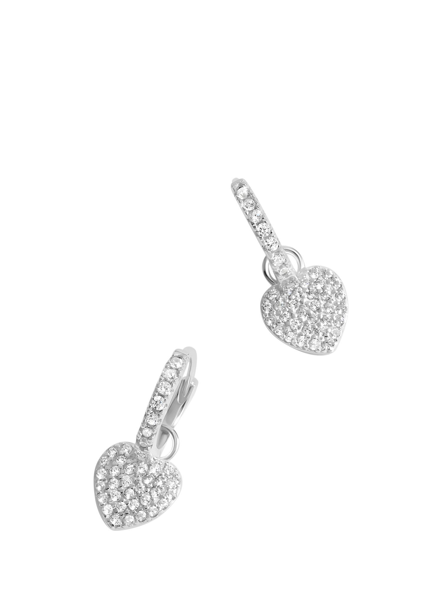 Pave hoop earrings featuring a delicate heart-shaped charm. These elegant hoops are the perfect addition to your collection and have a post and catch fastening.