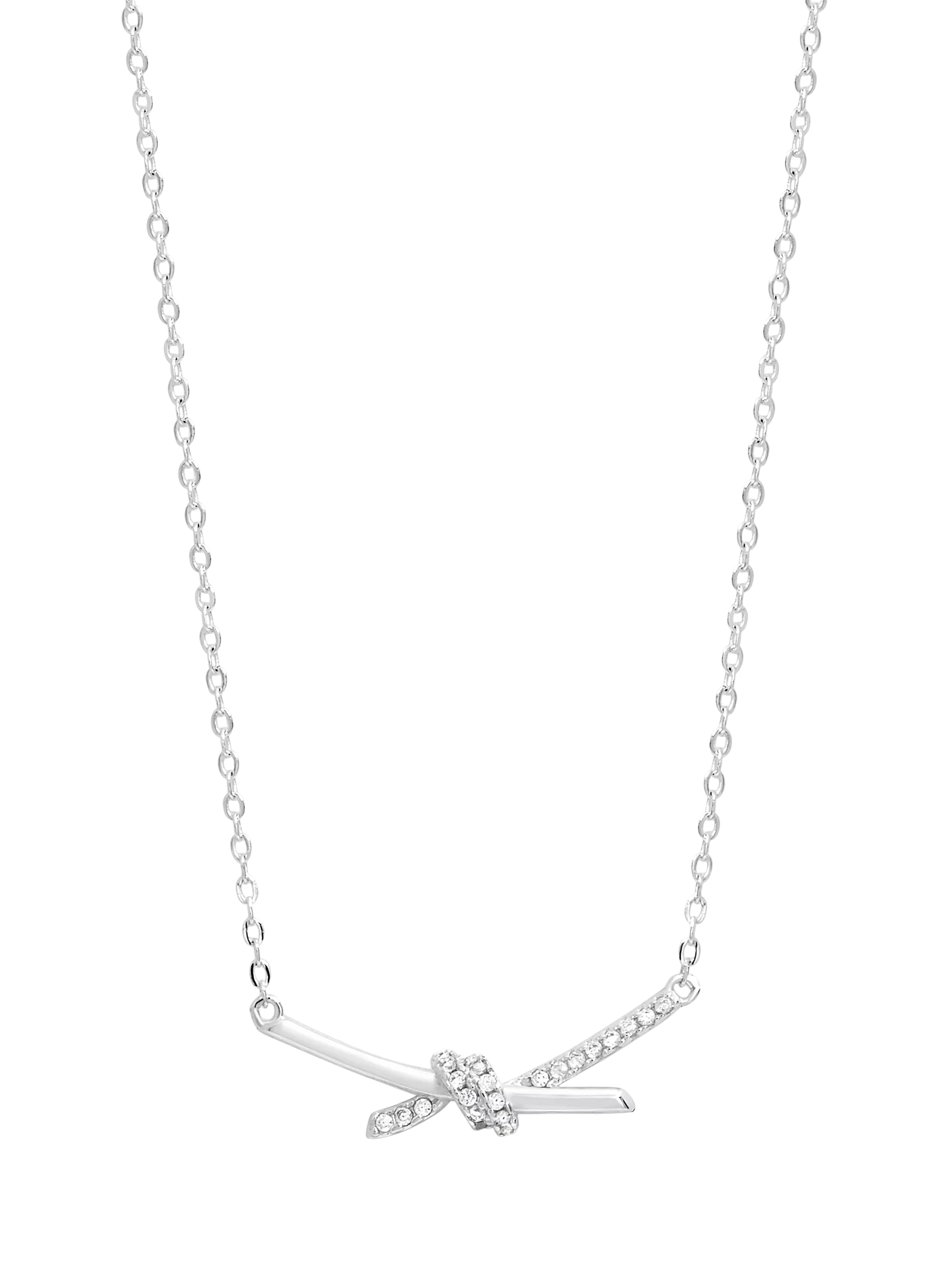 Adding a unique touch to your everyday style without fuss or complication, this necklace by Simply Silver features a love knot design, accented with sparkling pavé cubic zirconia for a subtle yet captivating shimmer.