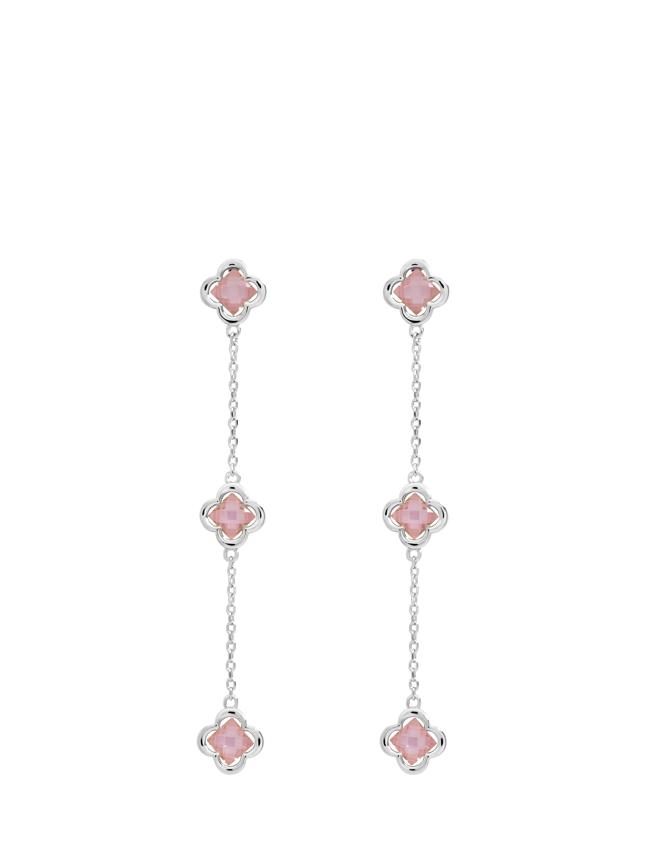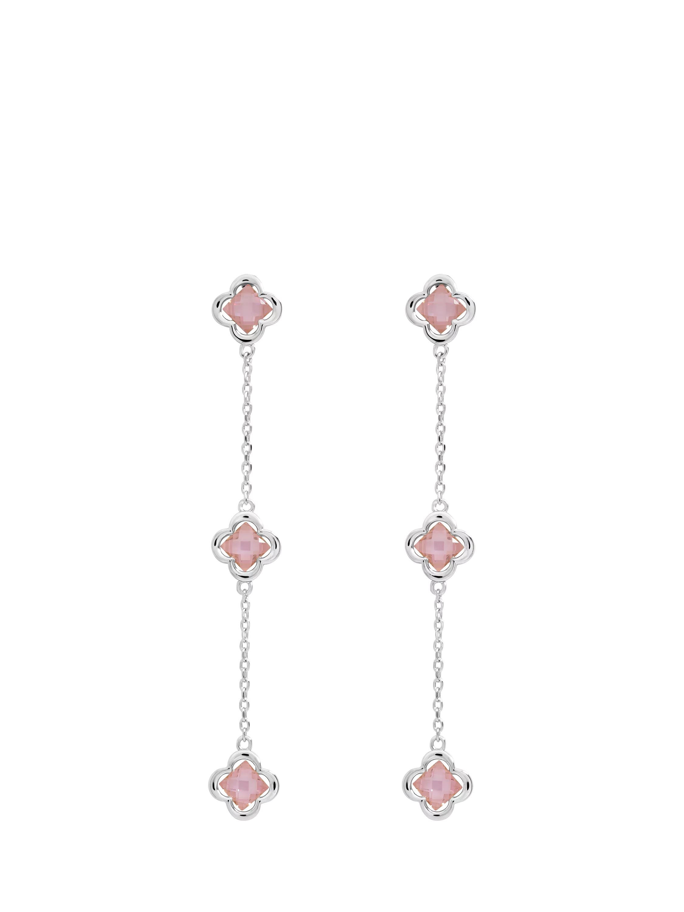 The Simply Silver Vintage Rose Fine Triple Clover Drop Earrings are designed to add luxurious movement and sparkle to your look. These elegant drop earrings feature a vertical line of three delicate clover motifs, each one finely set with brilliant, sparkling crystals. Crafted in polished sterling silver plating, the cascade of clover shapes creates a stunning focal point, symbolizing luck and elegance. They are perfect for special occasions or adding sophisticated shimmer to an evening outfit. Suitable for pierced ears only.