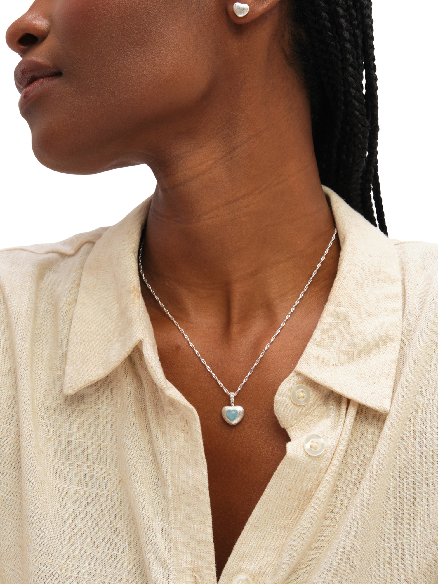 The Simply Silver Satin Heart Set offers a modern, sophisticated take on a classic symbol. This beautifully coordinated gift set includes a matching pendant necklace and earrings. Both pieces feature a delicate heart design crafted in sterling silver plating. Finished with a smooth satin texture that provides a soft, matte radiance. This subtle texture adds depth and interest, making this set perfect for gifting someone special with effortless, contemporary style. The earrings are suitable for pierced ears only.