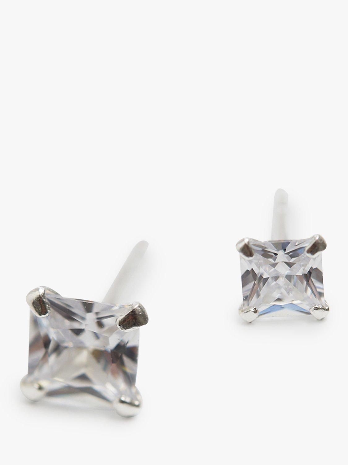 Simply SilverSquare Cubic Zirconia Stud Earrings, Silver
