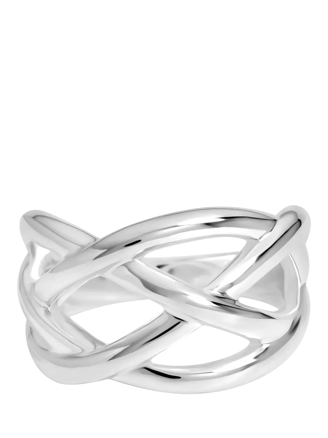 The Simply Silver Statement Open Polished Ring combines modern elegance with intricate detail. Crafted in polished sterling silver plating, the ring features an open, woven design that creates texture and movement, catching the light beautifully from every angle. Its versatile silhouette makes it perfect for wearing alone as a standout piece or layering with other rings to create a stylish, curated stack.