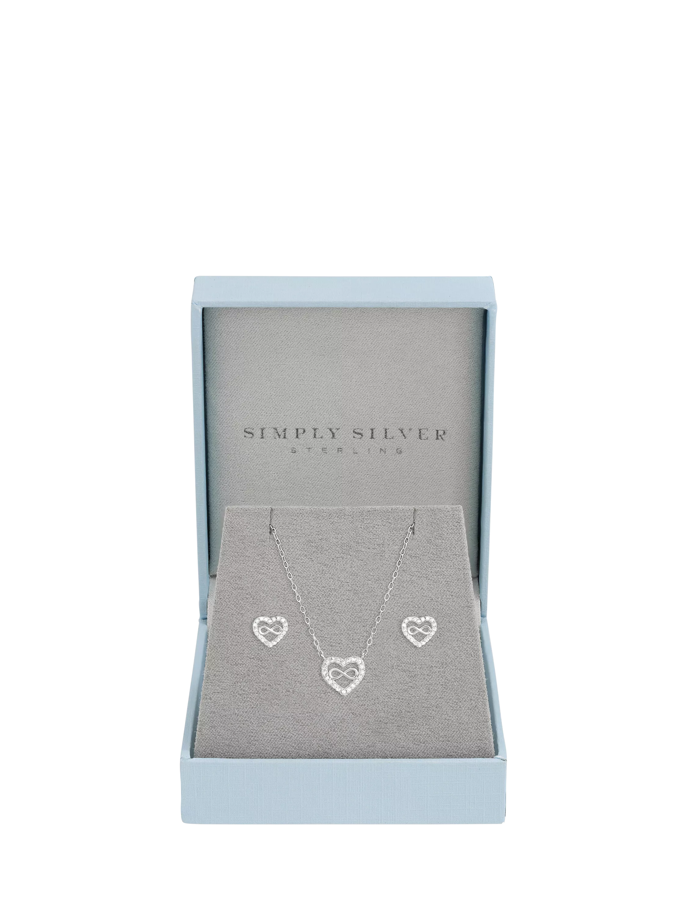 Simply SilverSterling Silver 925 Pave Heart and Infinity Set - Gift Boxed