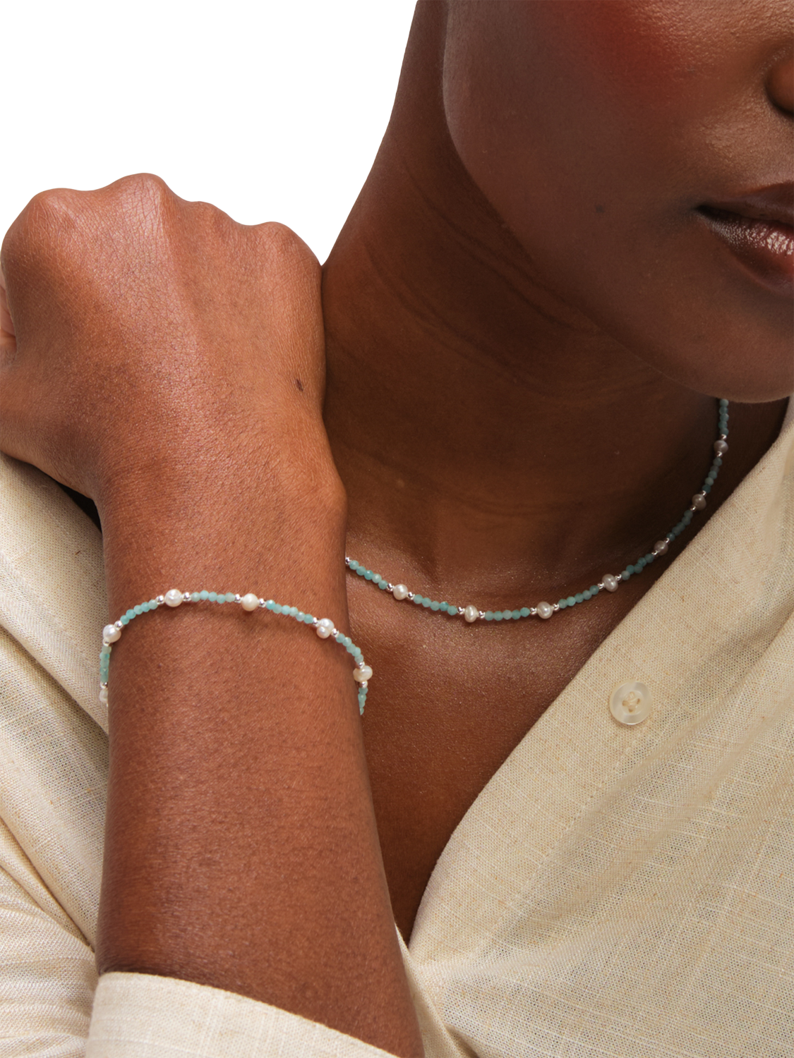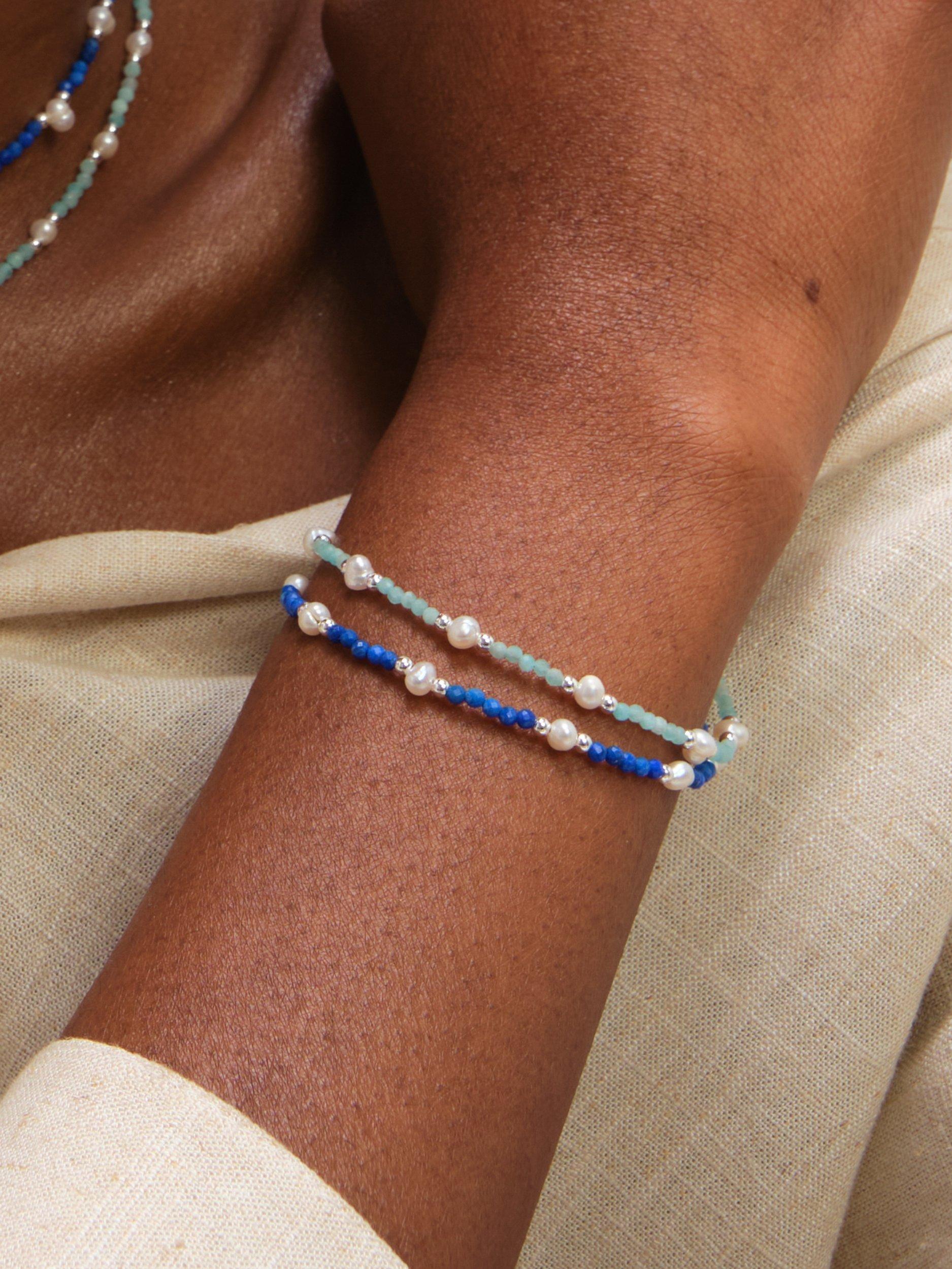 The Simply Silver Turquoise and Pearl Bracelet adds a subtle touch of summer to any outfit. Featuring soft Turquoise stones paired with freshwater pearls, it has a fresh and breezy look that works perfectly for warm weather days. Wear it alone for a simple accent or layer with other bracelets for a relaxed, effortless style. Ideal for everyday summer wear, it's a versatile piece that complements both casual and slightly dressier looks.