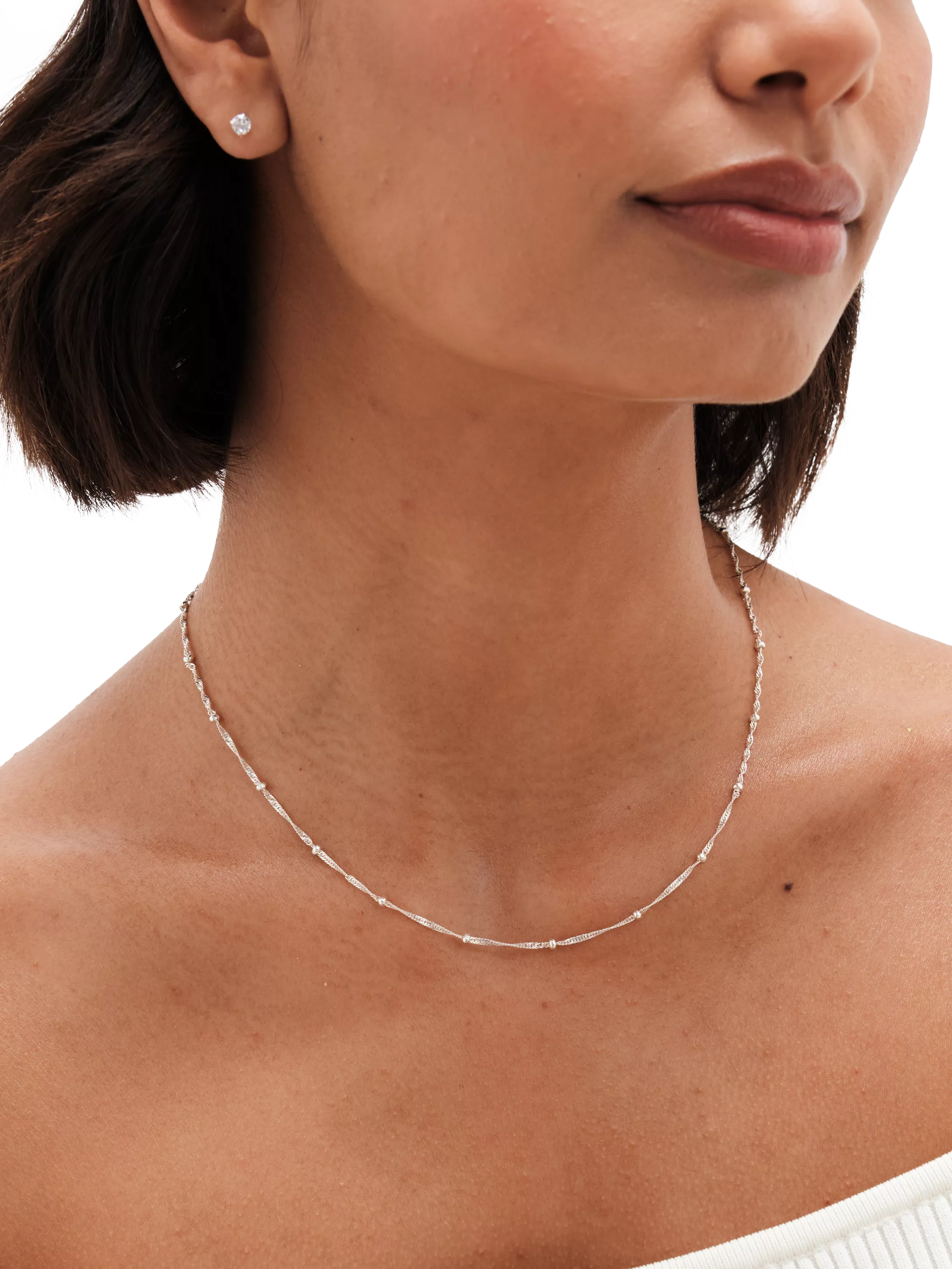 Suspending from a twist ball chain, this necklace from Simply Silver gives jewellery trinkets a welcome refresh. It also benefits from a classic lobster claw clasp for a secure fit.