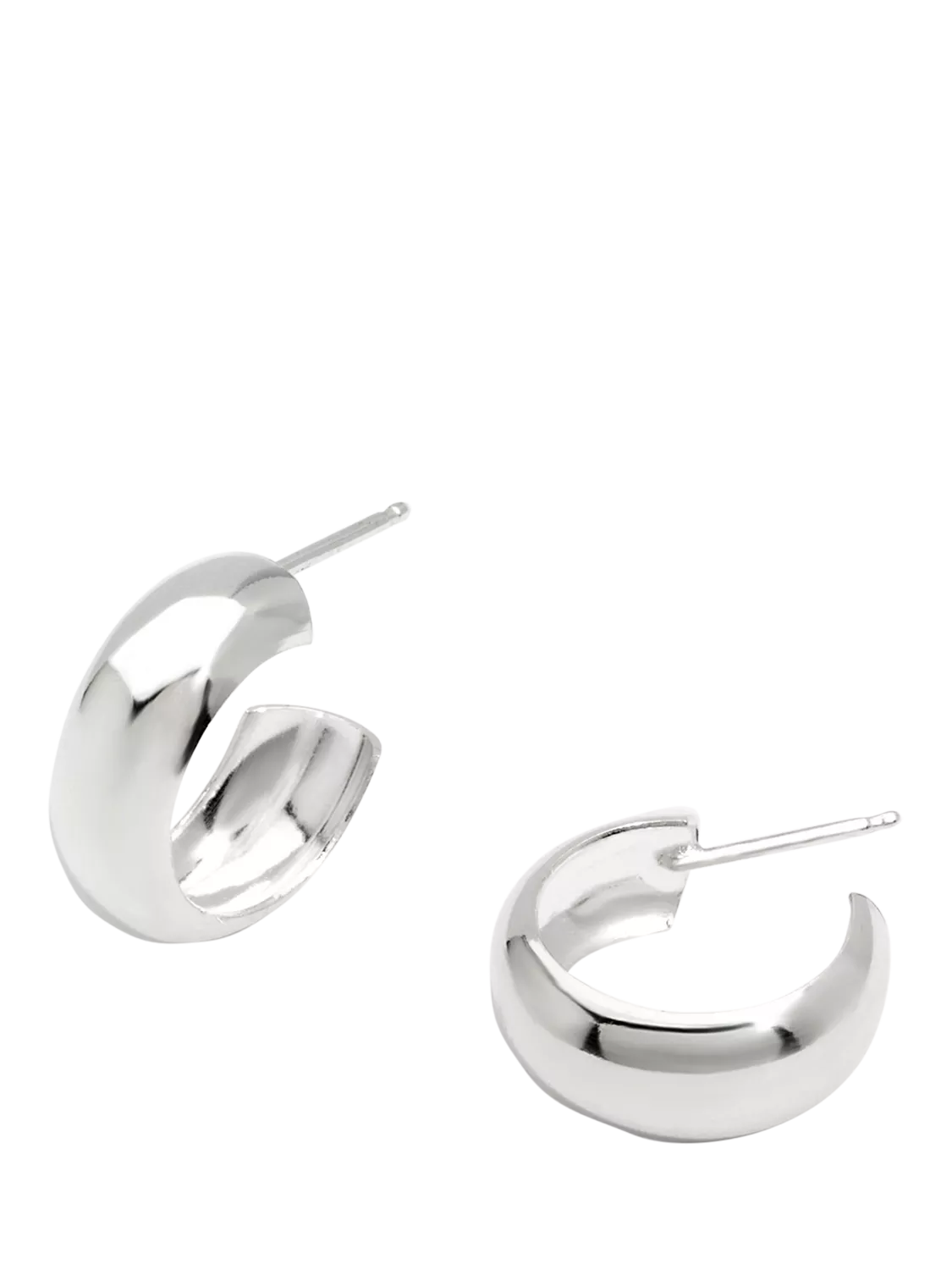 Designed by Simply Silver, these earrings are shaped into wide polished hoops. Complete with post fittings, they are suitable for pierced ears only.