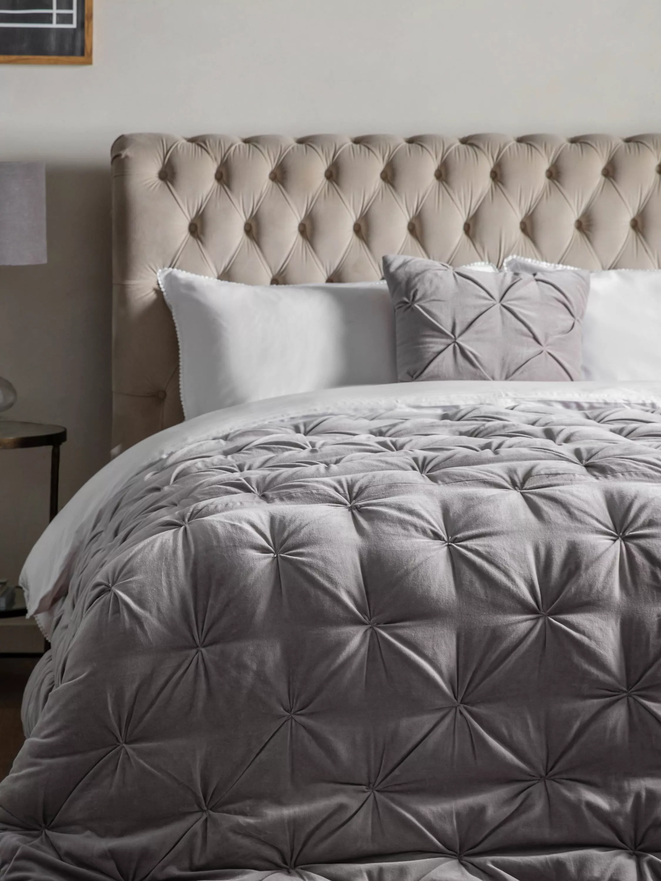 Add luxury to your bed with this opulent velvet bedspread. Textured and softly gathered on the top, the filling is made from lightweight polyester.