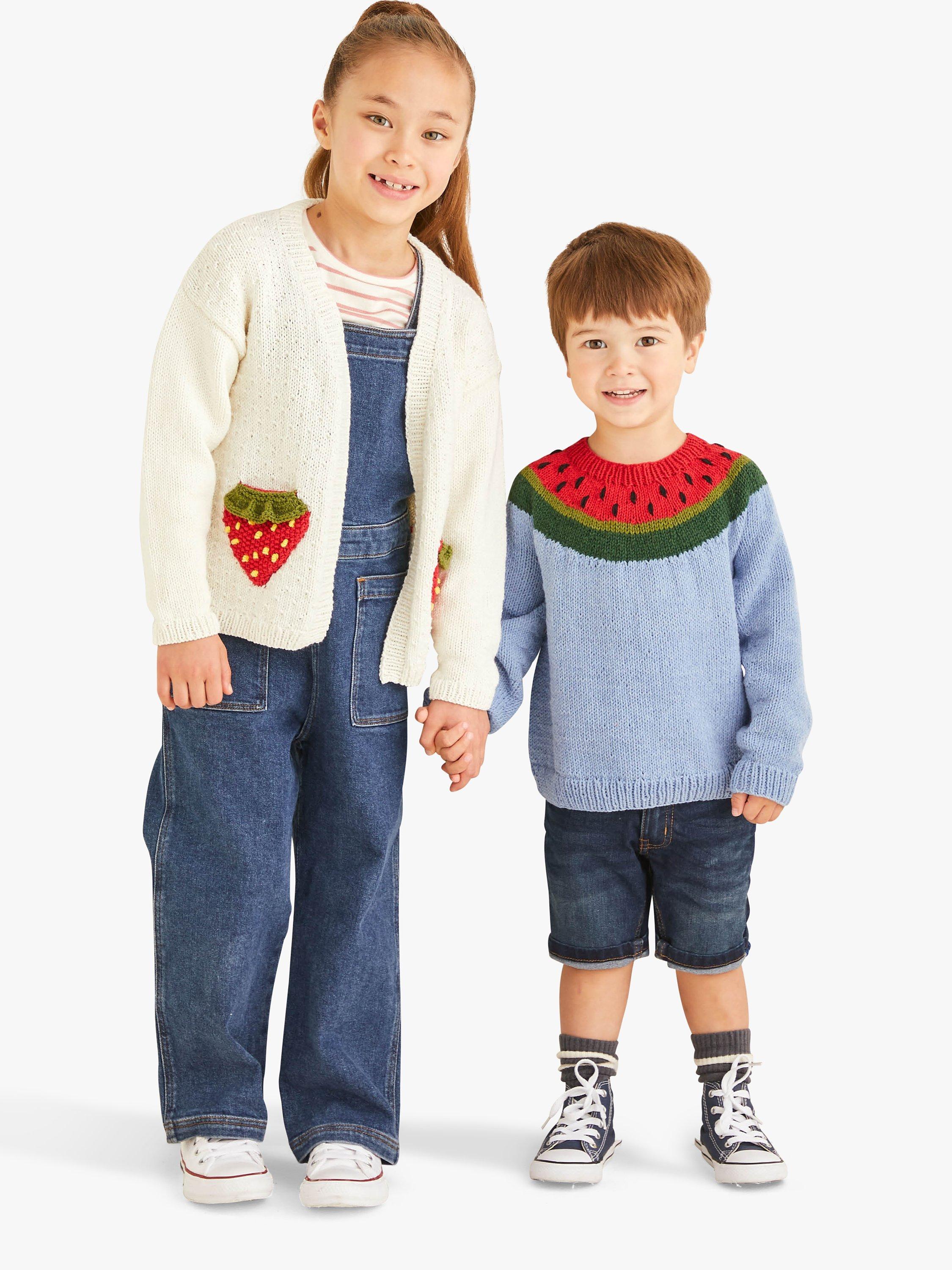 Cool knits in this lightweight cotton blend are bound to become firm favourites both for kids and the grownups who knit for them.