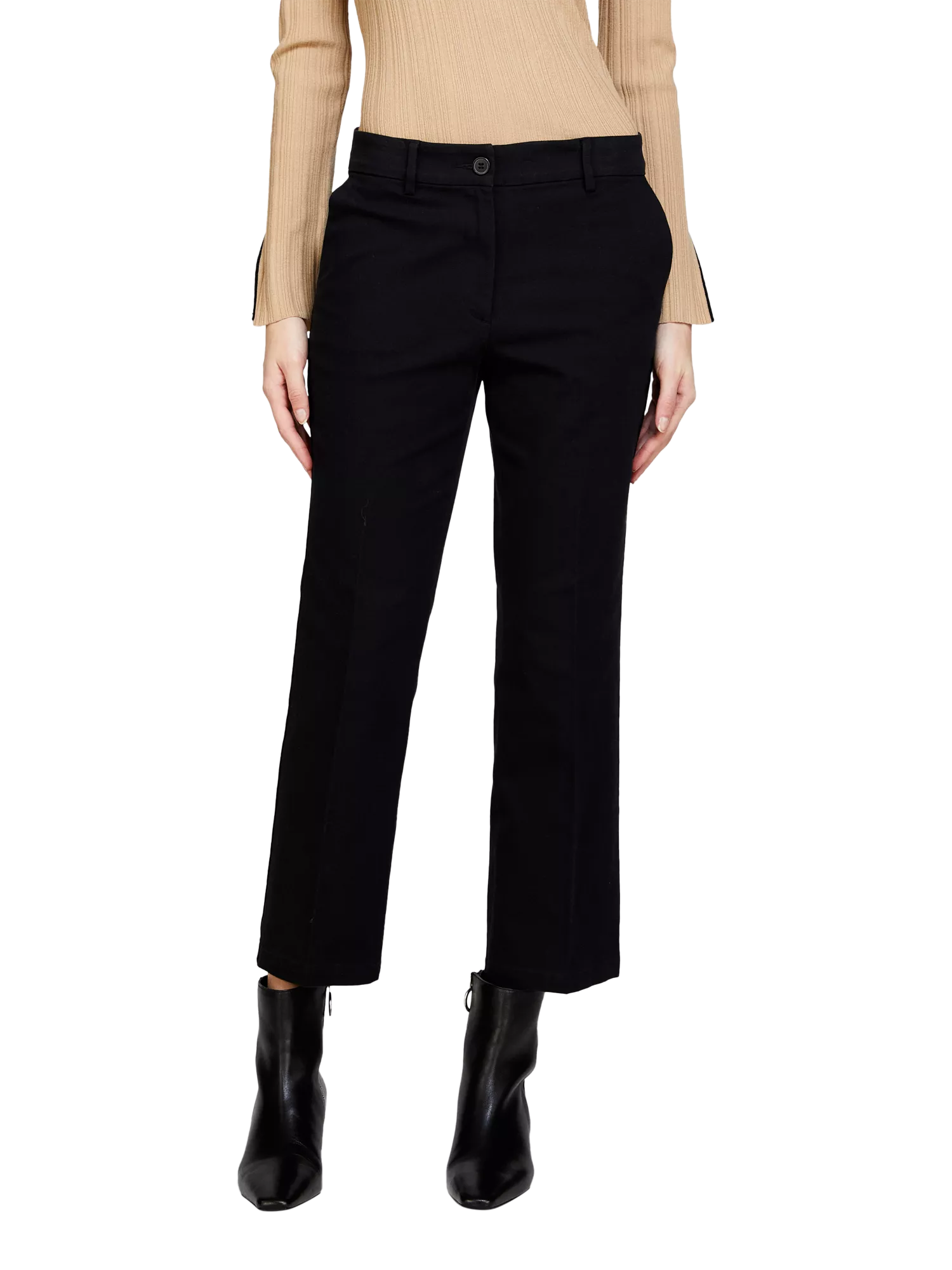 A pair of flared leg trousers from SISLEY made from a cotton-blend fabric. They are designed to sit mid rise with a zip fastening and hems that are cropped.