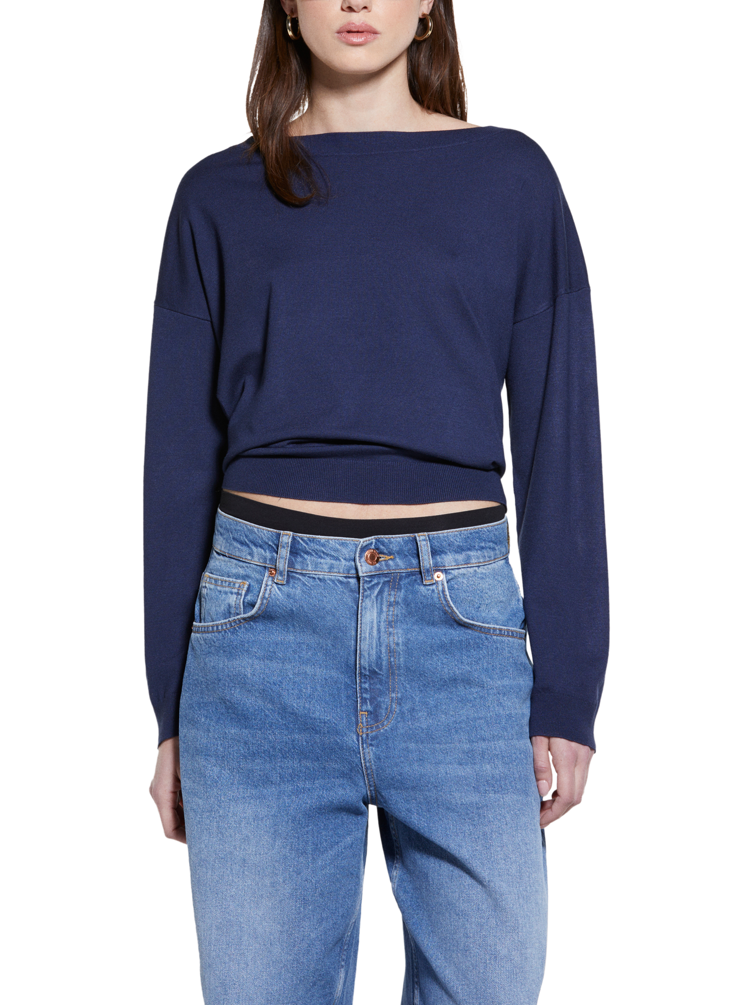 Elegant sweater with a boat neck, perfect for casual and office wear, offering comfort and style with a regular fit and long sleeves.
