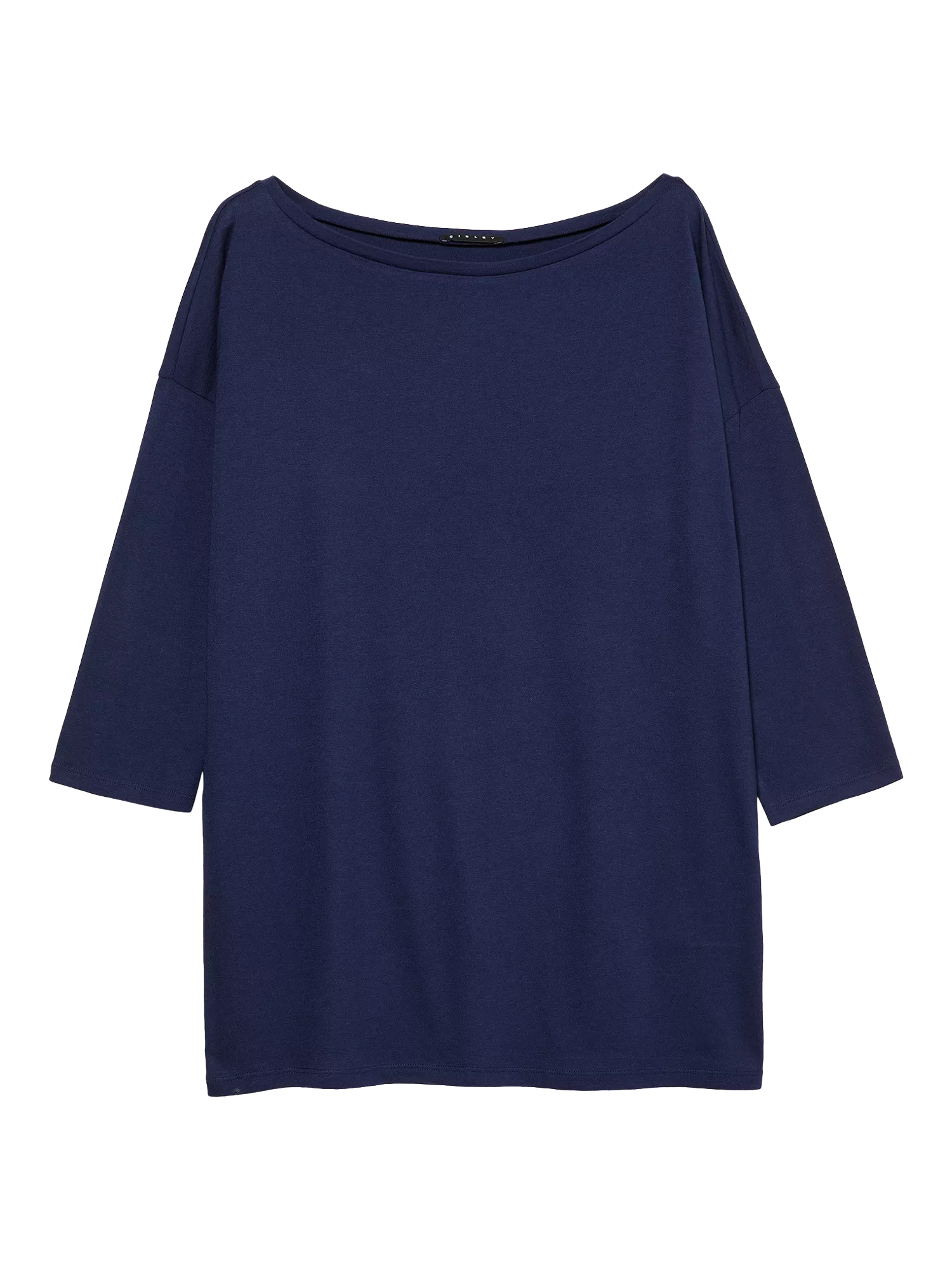 An everyday T-shirt by SISLEY, made from a soft cotton blend. Featuring a boat neck and three-quarter length sleeves, the plain colour means it goes with everything. Casual, comfortable, and effortlessly chic.