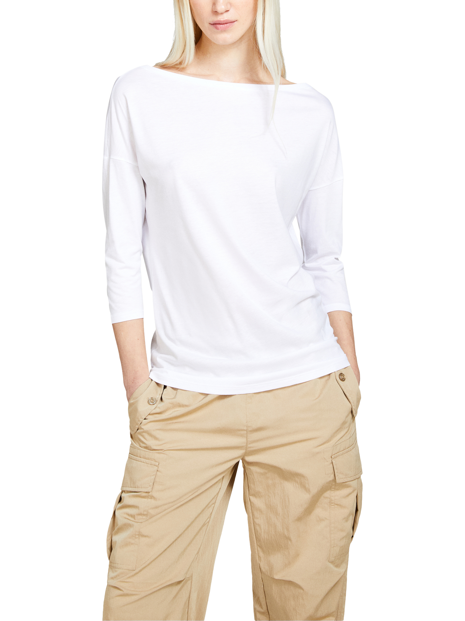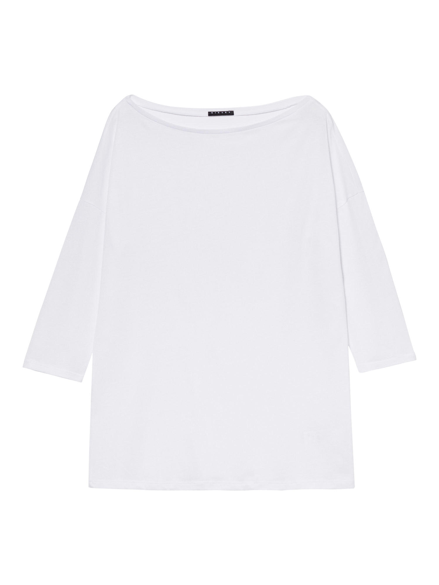 T-shirt in Modal® and cotton blend jersey, with boat neck and 3/4 sleeves.