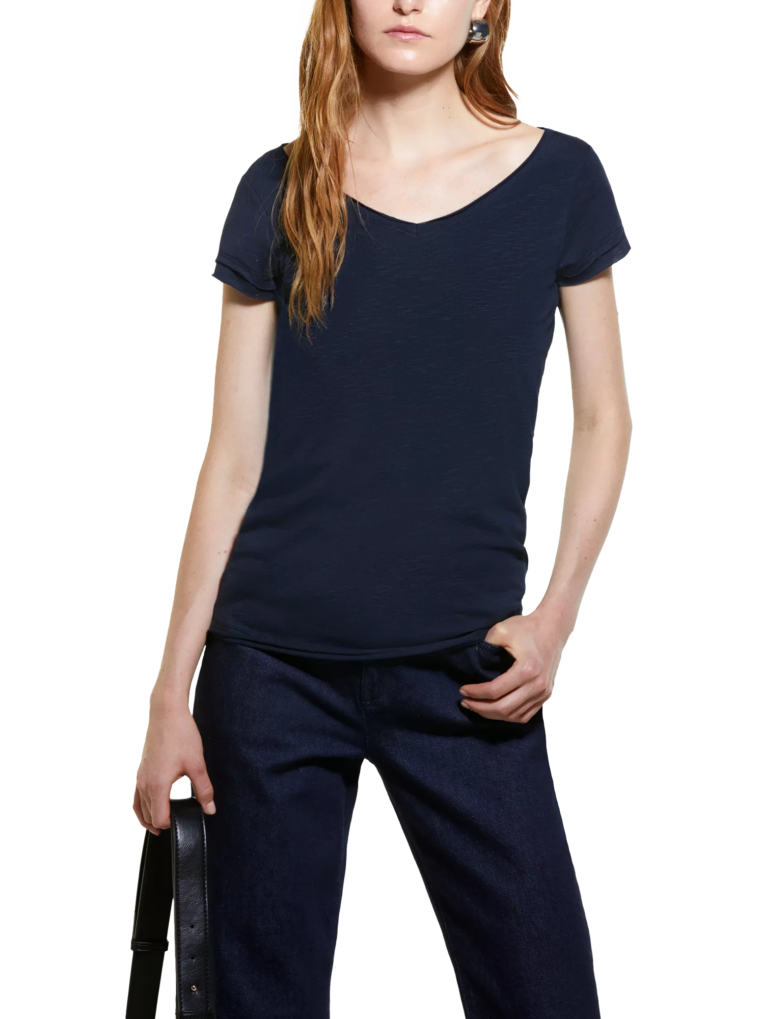 Regular fit t-shirt in organic cotton and Modal® blend jersey. V-neck, short sleeves and raw cut edges.