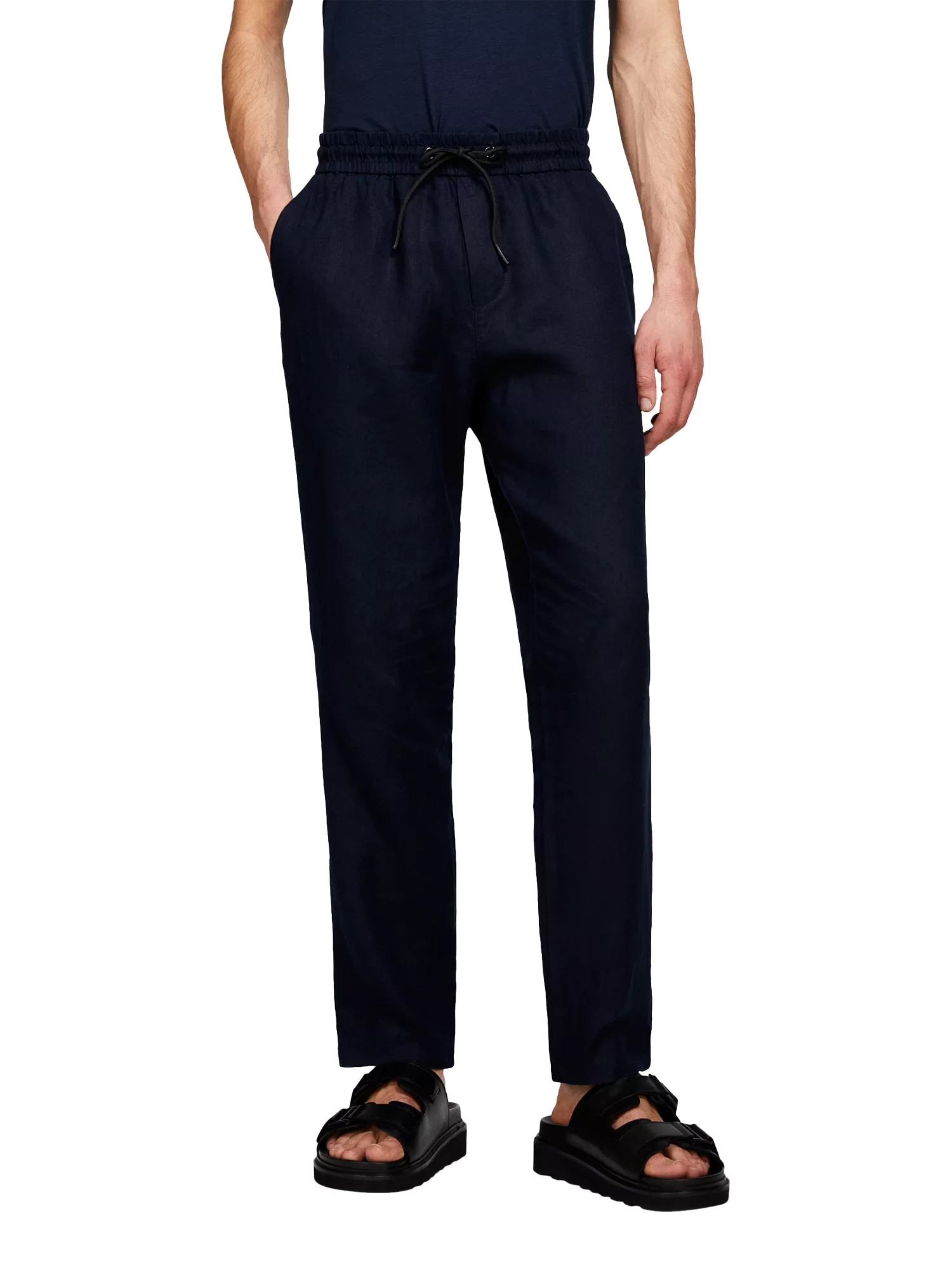 SISLEYDrawstring Waist Linen Trousers, Blue