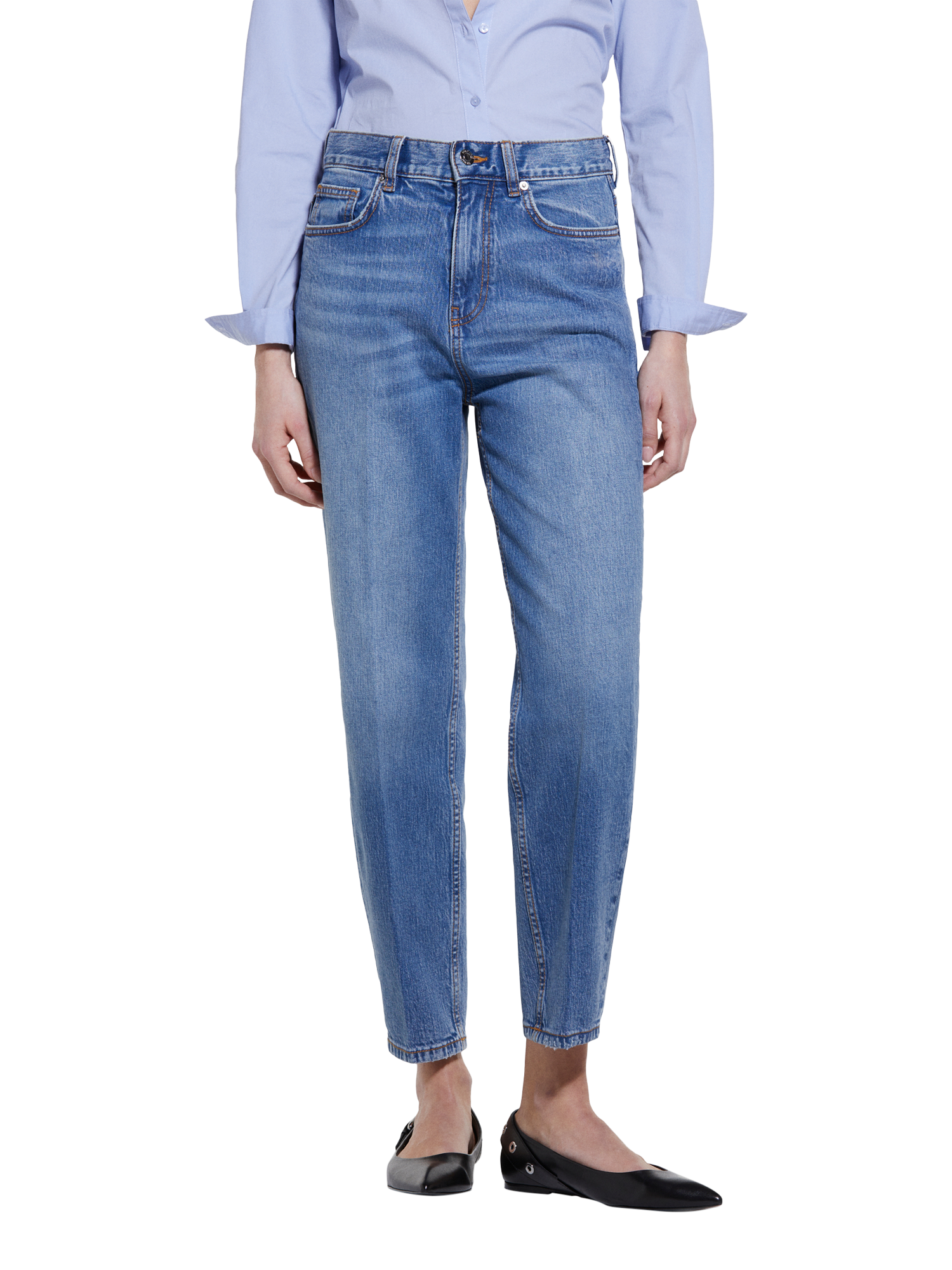 These Mom Fit Jeans feature a relaxed and versatile design made from comfortable cotton denim, ideal for casual everyday wear.