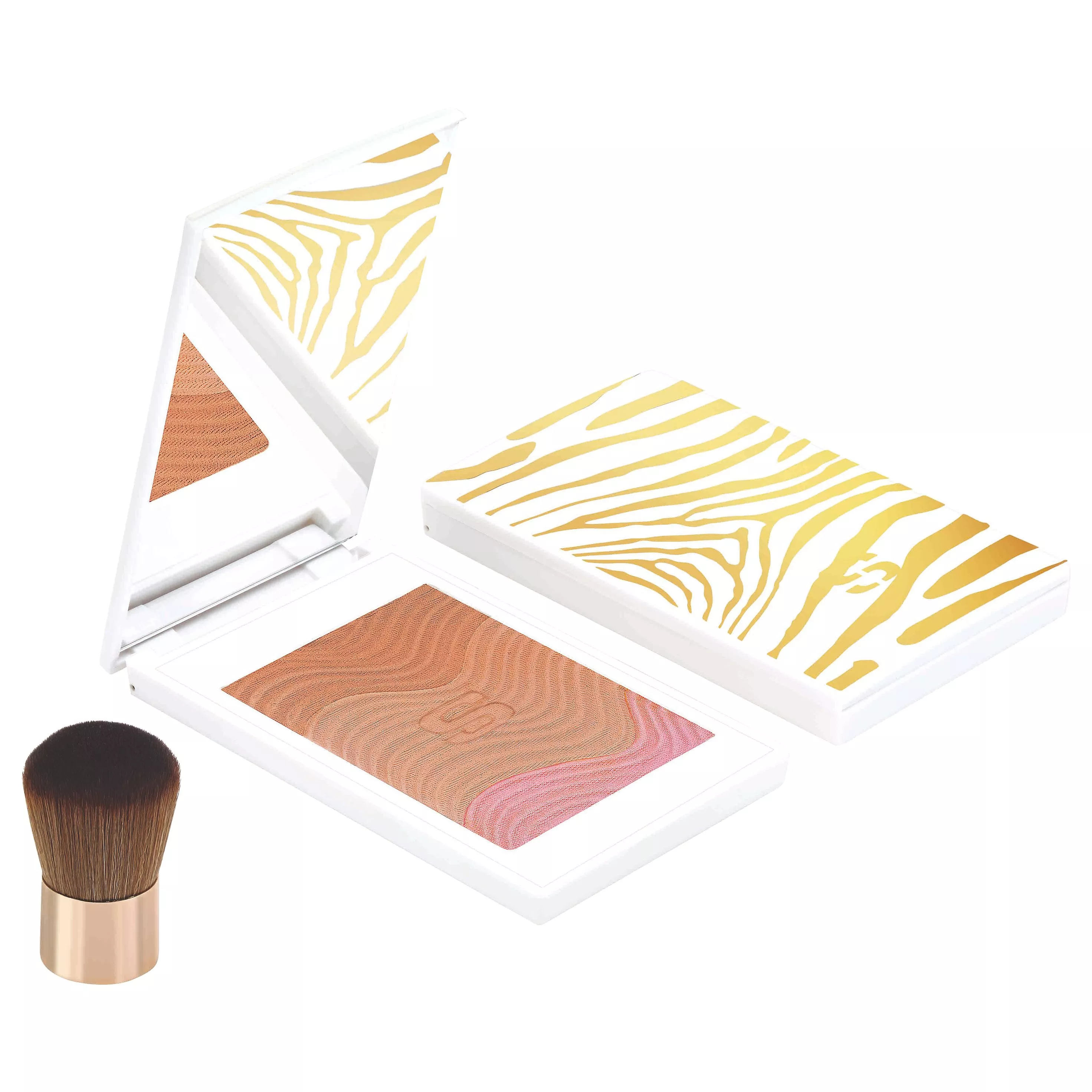 Its 'wave' design comprises two golden beige shades to tailor your tan however you like and a blush shade to add freshness and radiance.
