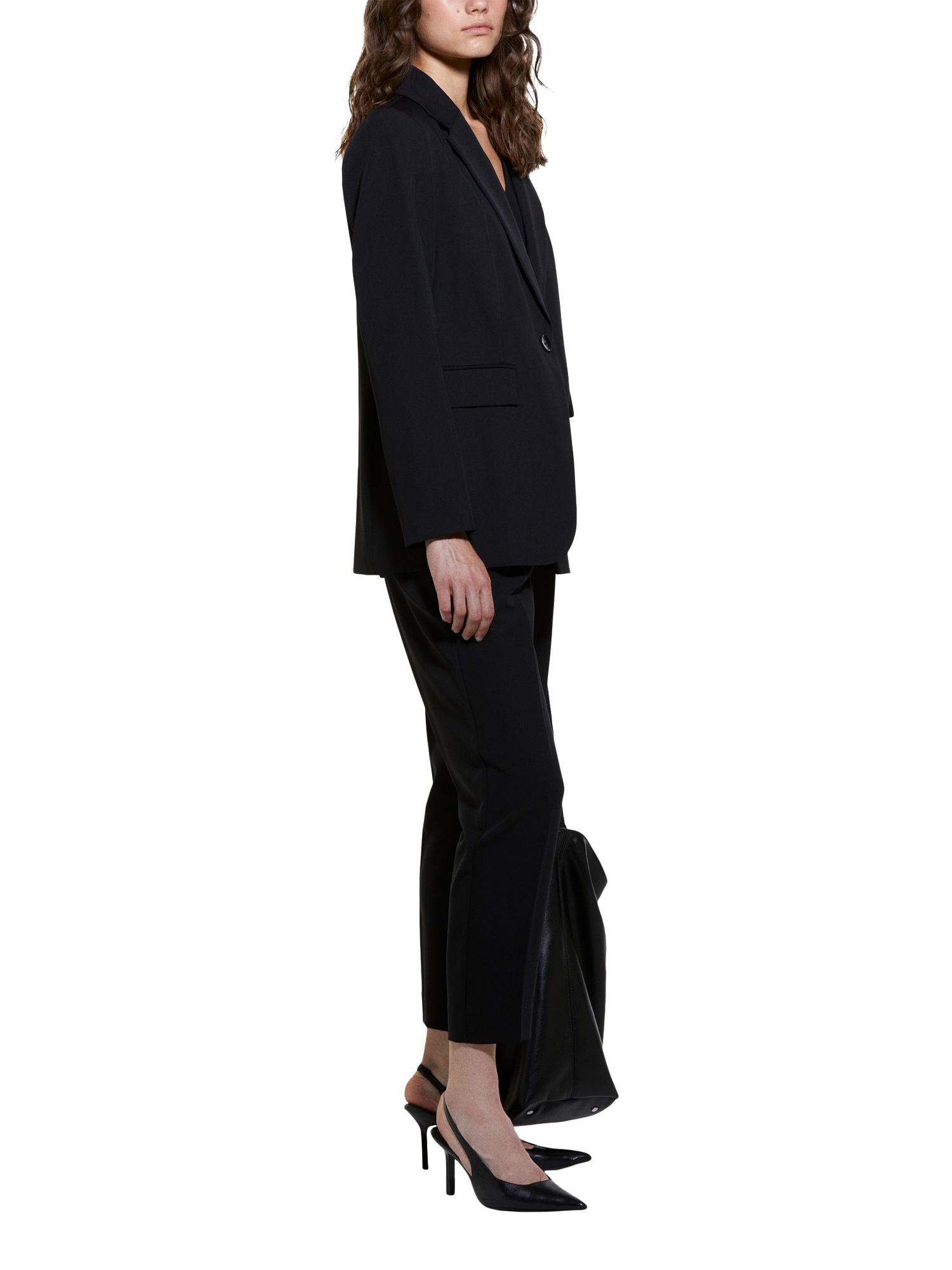A single-breasted blazer in viscose blend, with lapels, single button closure, two front flap pockets and central rear slit.