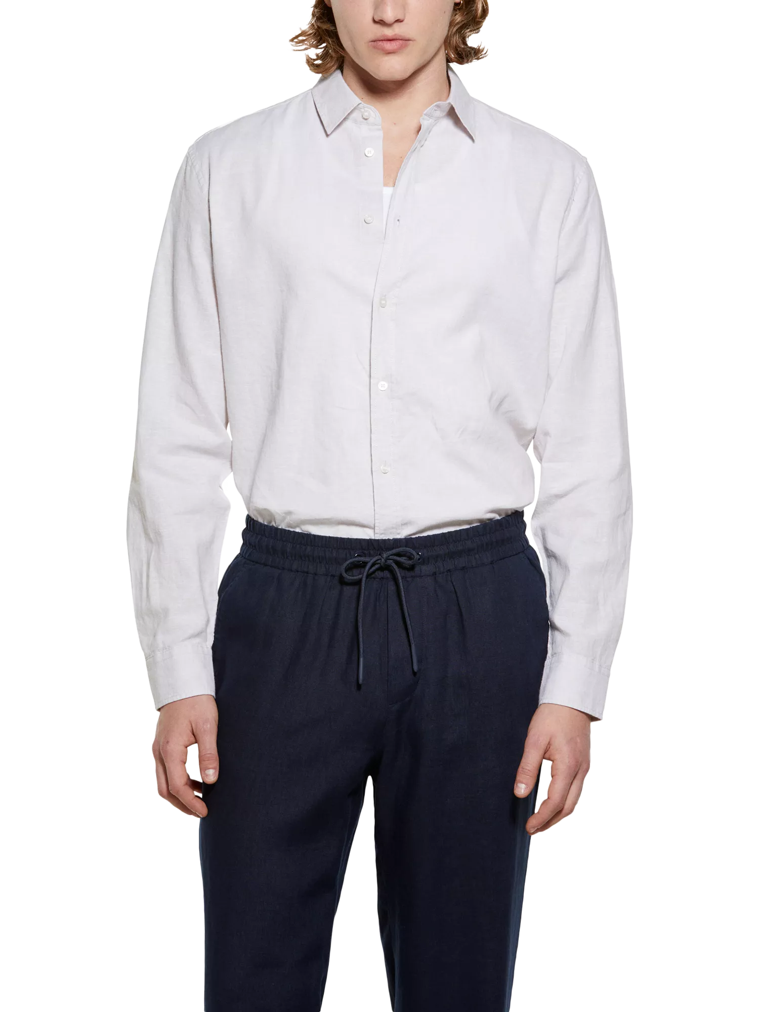 Regular fit shirt in a linen blend, with pointed collar, front button opening and long sleeves.