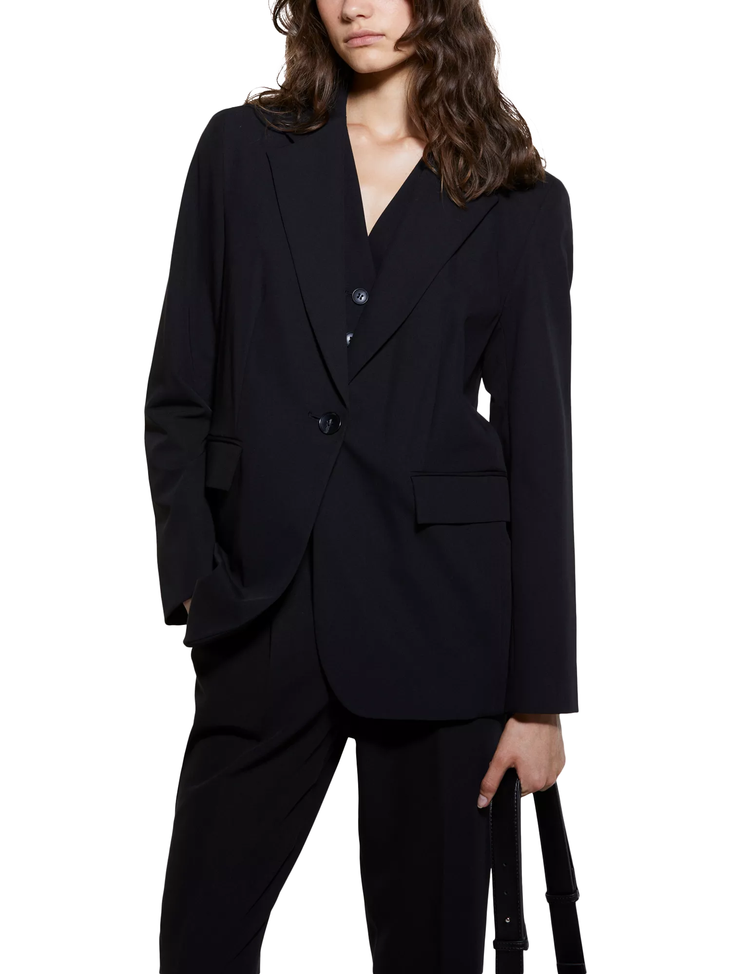 A single-breasted blazer in viscose blend, with lapels, single button closure, two front flap pockets and central rear slit.