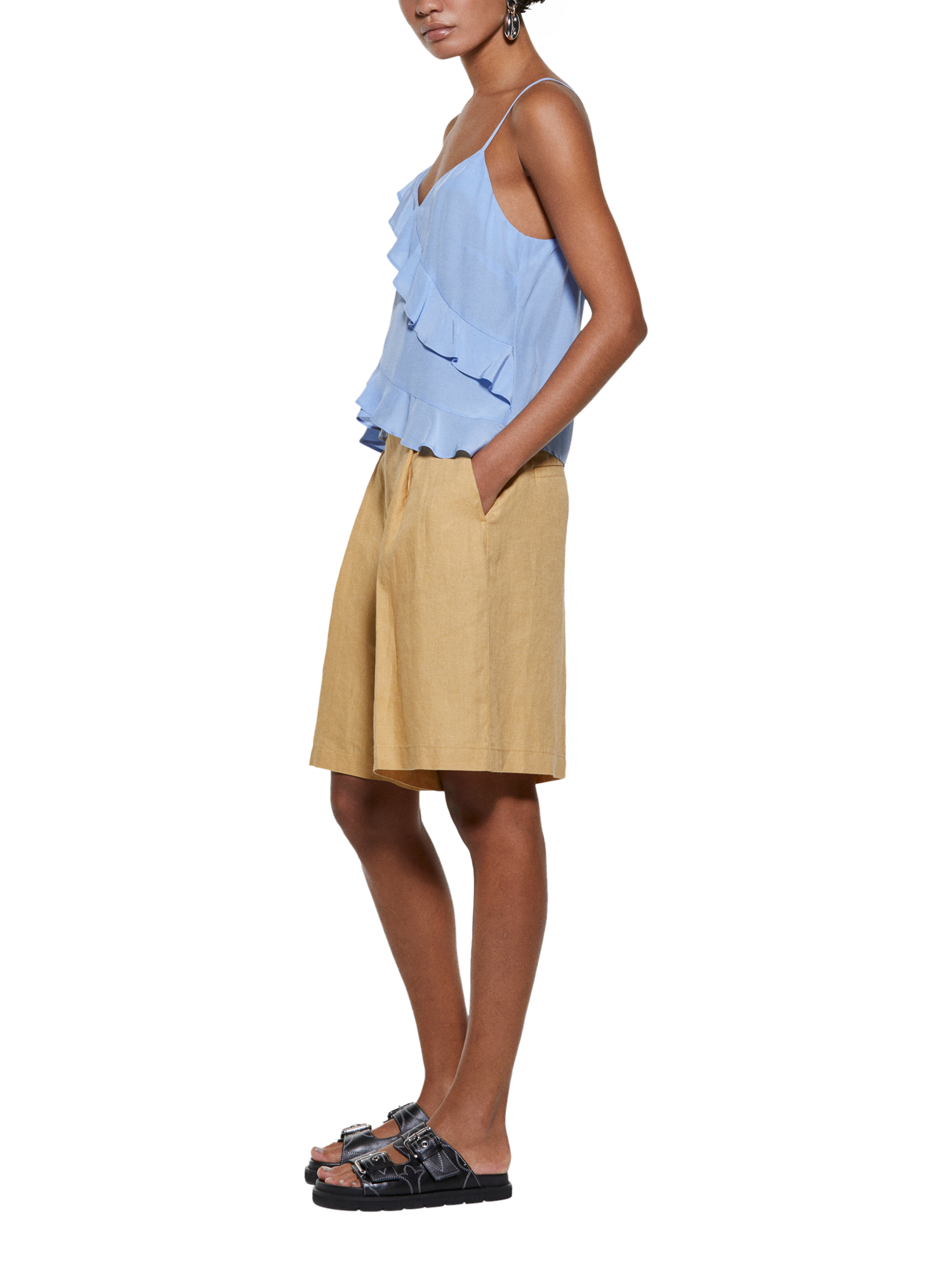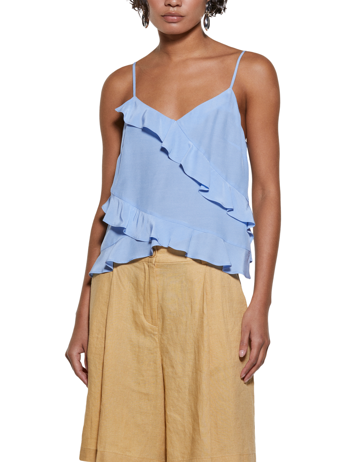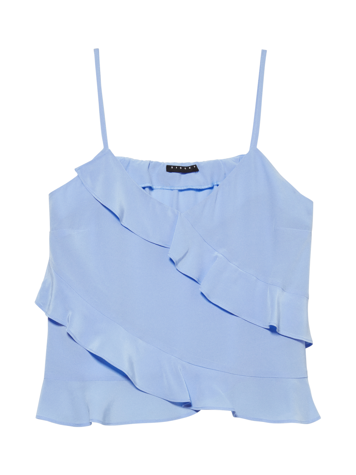 This top features chic rouches and a modern cropped design, perfect for adding a touch of elegance to any summer outfit.