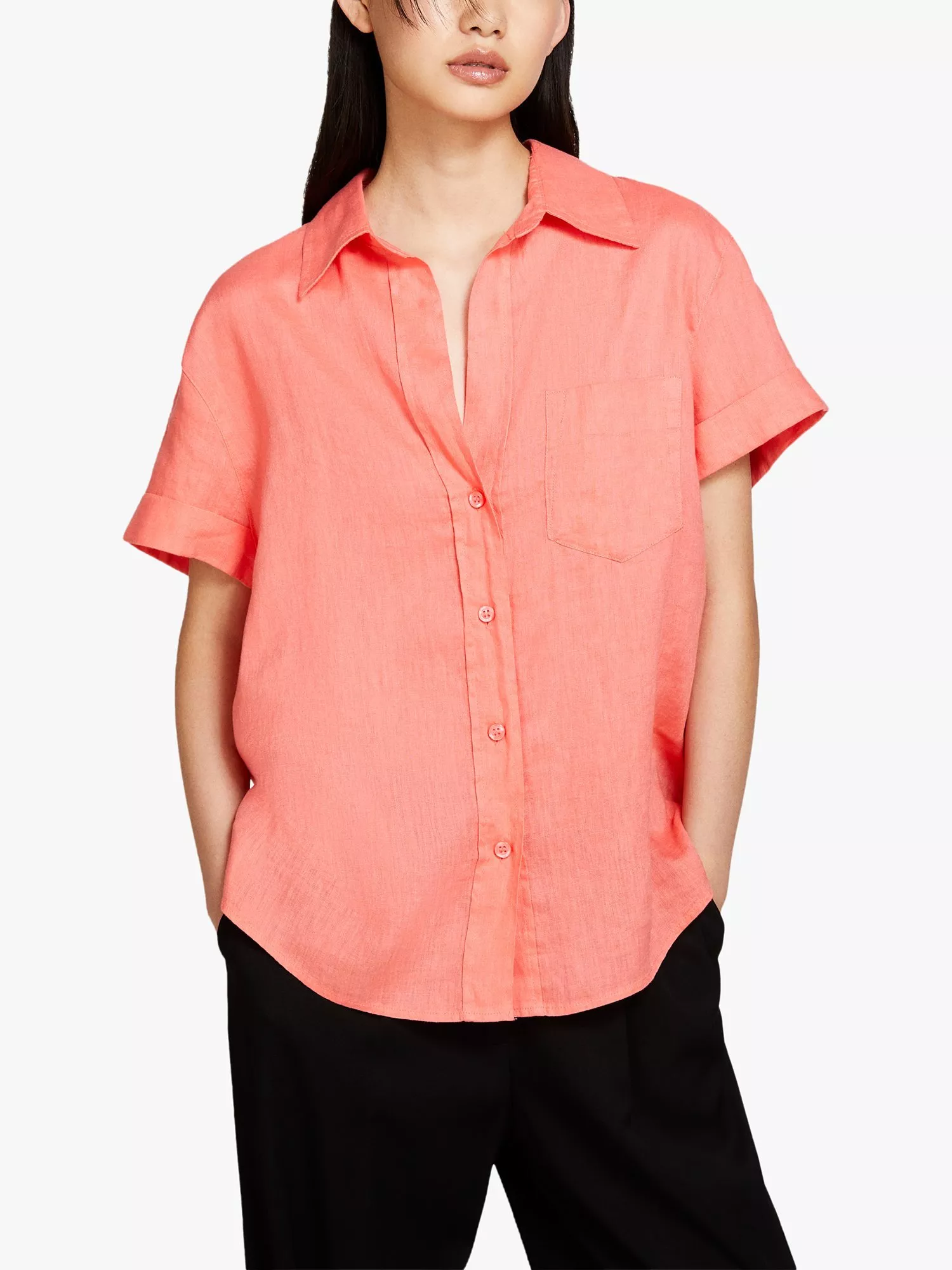 Designed with a crisp collar neckline and short sleeves, it is made from linen for quality comfort in warmer weather and works well with slim-fit trousers for Monday morning meetings and smart-casual settings alike.