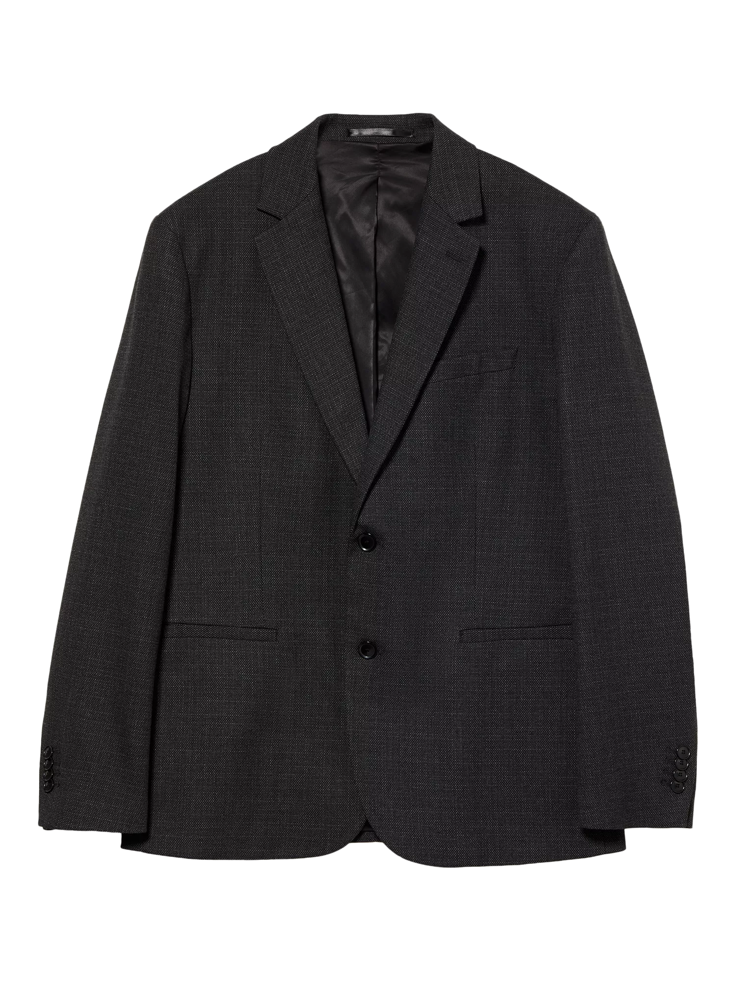 This tailored blazer features a sculpted silhouette with clean lapels, crafted from a yarn-dyed viscose blend flannel for a soft drape that moves with you. The single-breasted design includes relaxed shoulders and front welt pockets, offering a versatile layer for both professional and evening wear.
