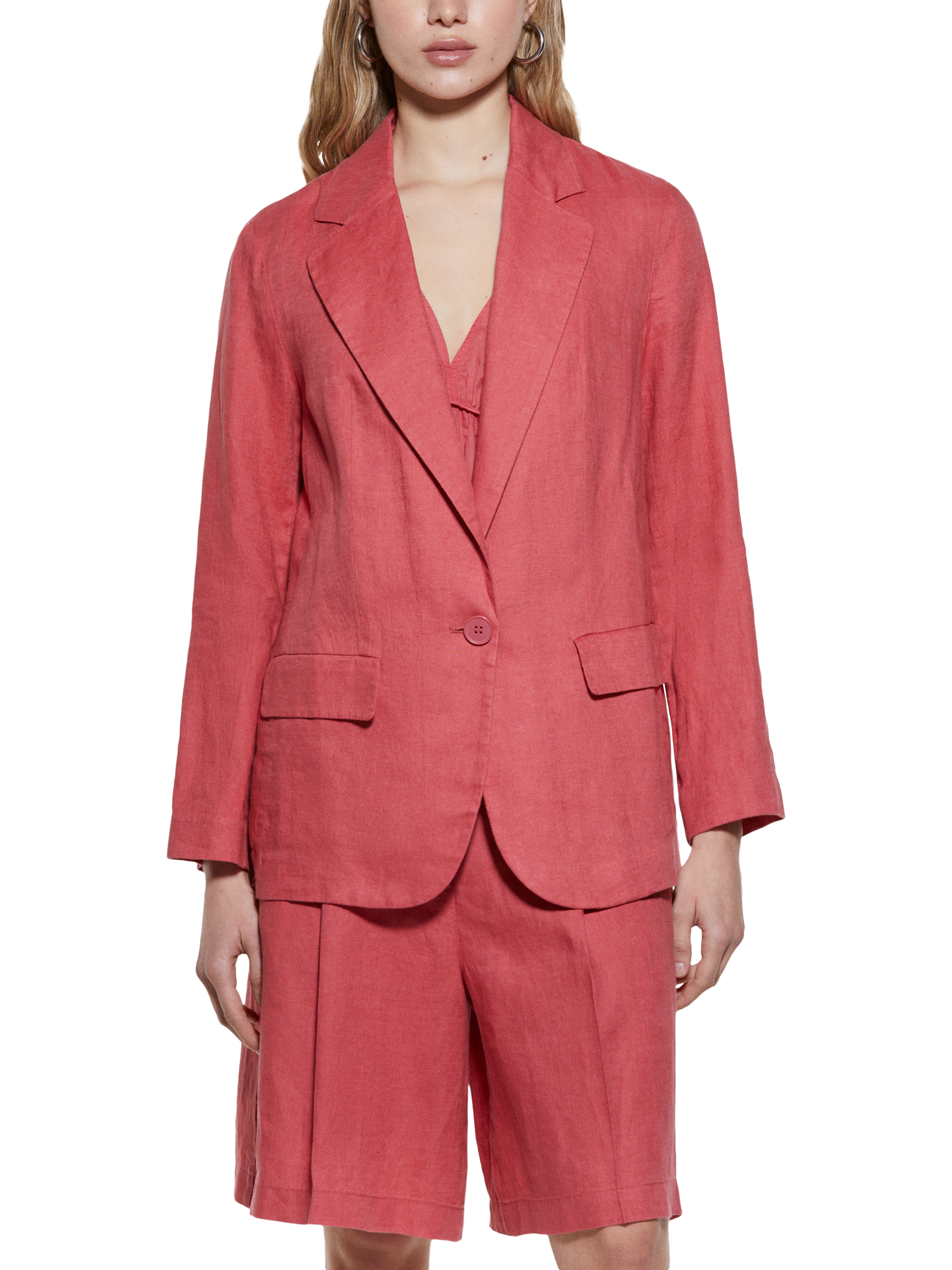 Experience the elegance of a regular fit, tailored with premium linen fabric. A sophisticated look styled with lapels, a single button fastening and two front flap pockets. Great for any setting in warmer months.