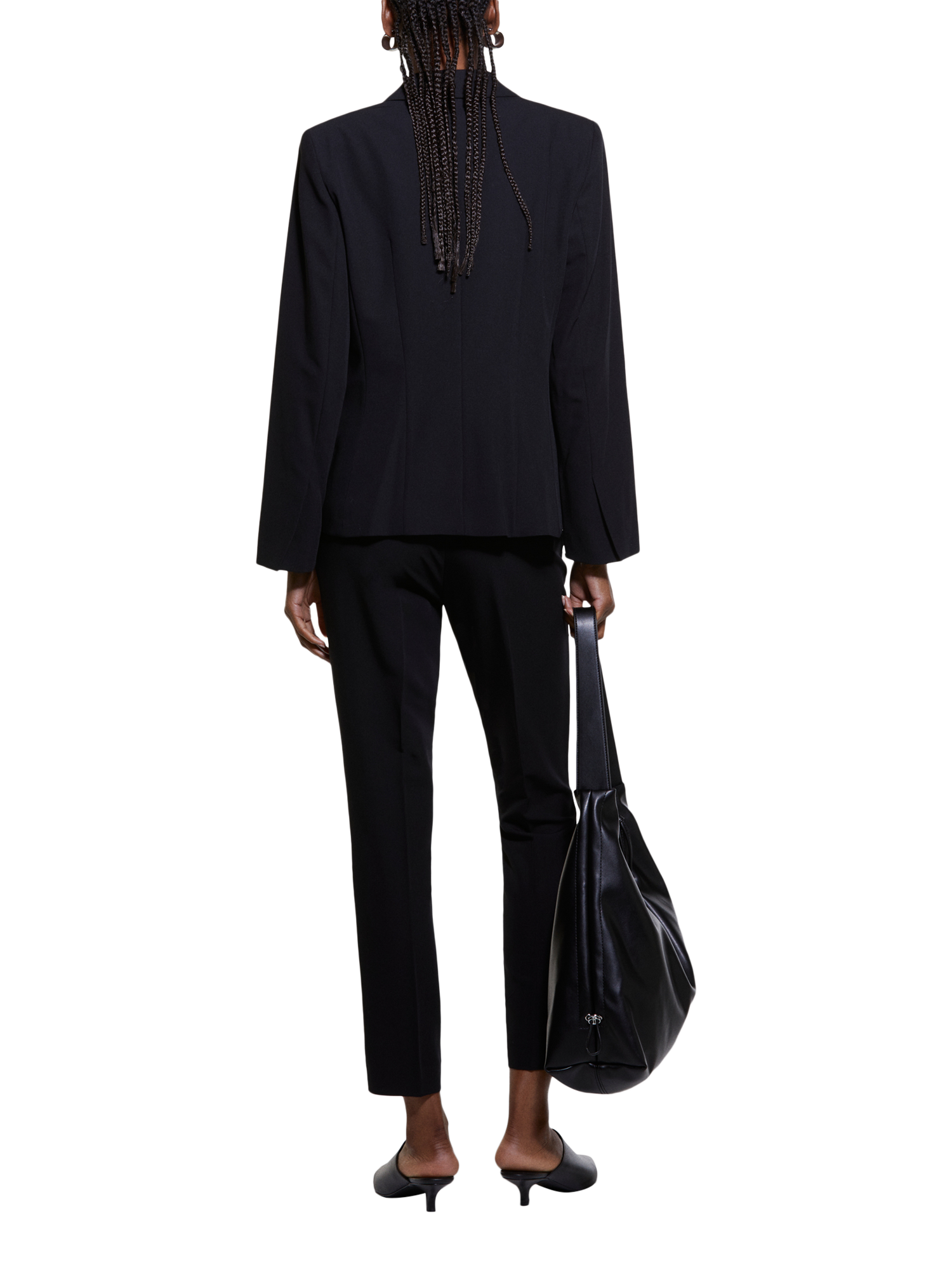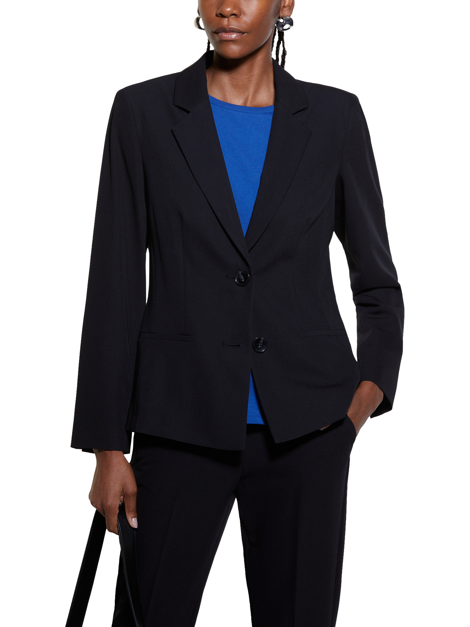 A single-breasted blazer in stretch viscose blend, with side panel motif. Low lapels, two-button closure and two front welt pockets.