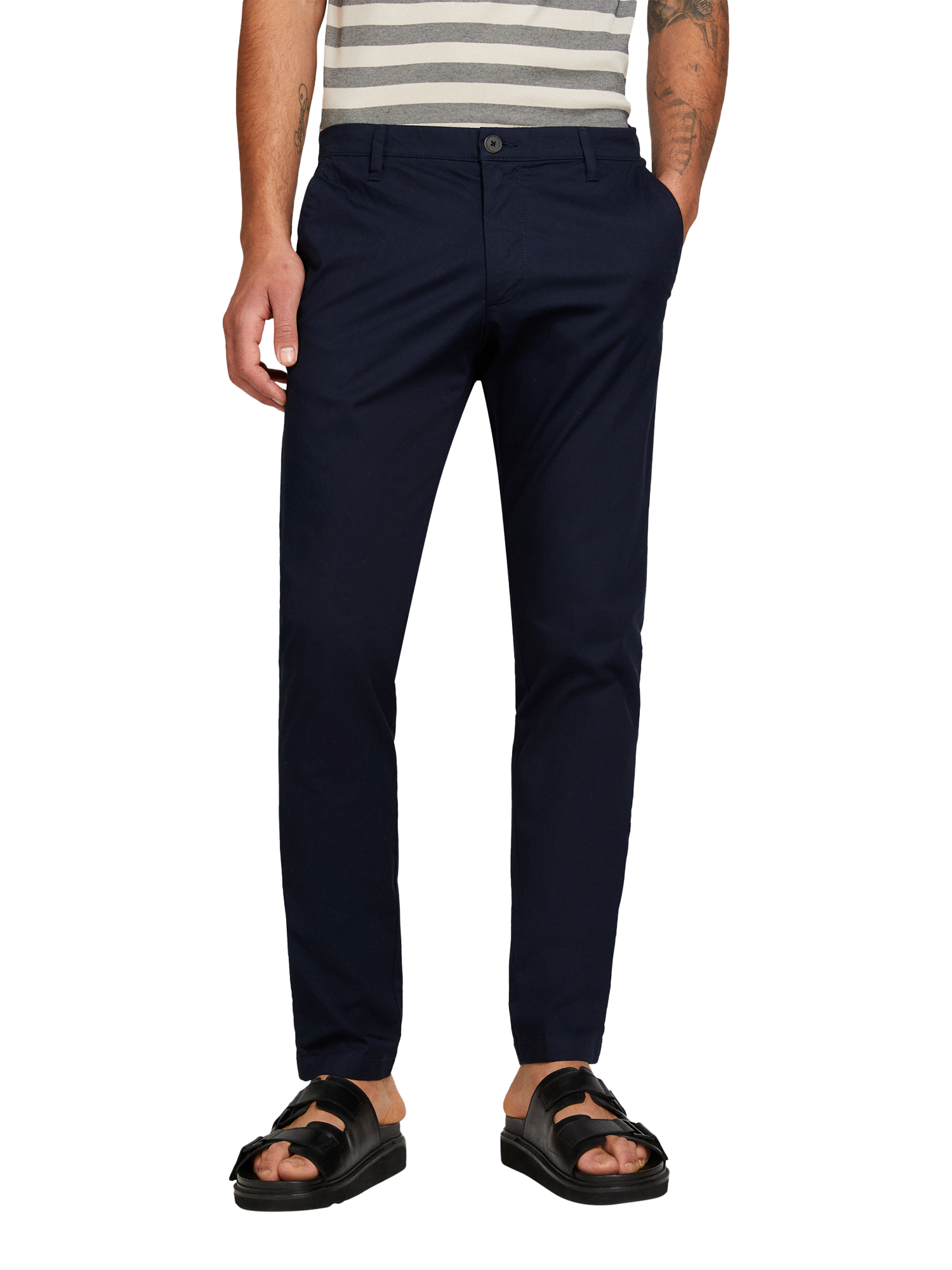 SISLEY chinos – slim-cut for a sharp look and crafted for all-day comfort. The stretch cotton blend moves with you, making every moment more effortless and every outfit a little smarter.