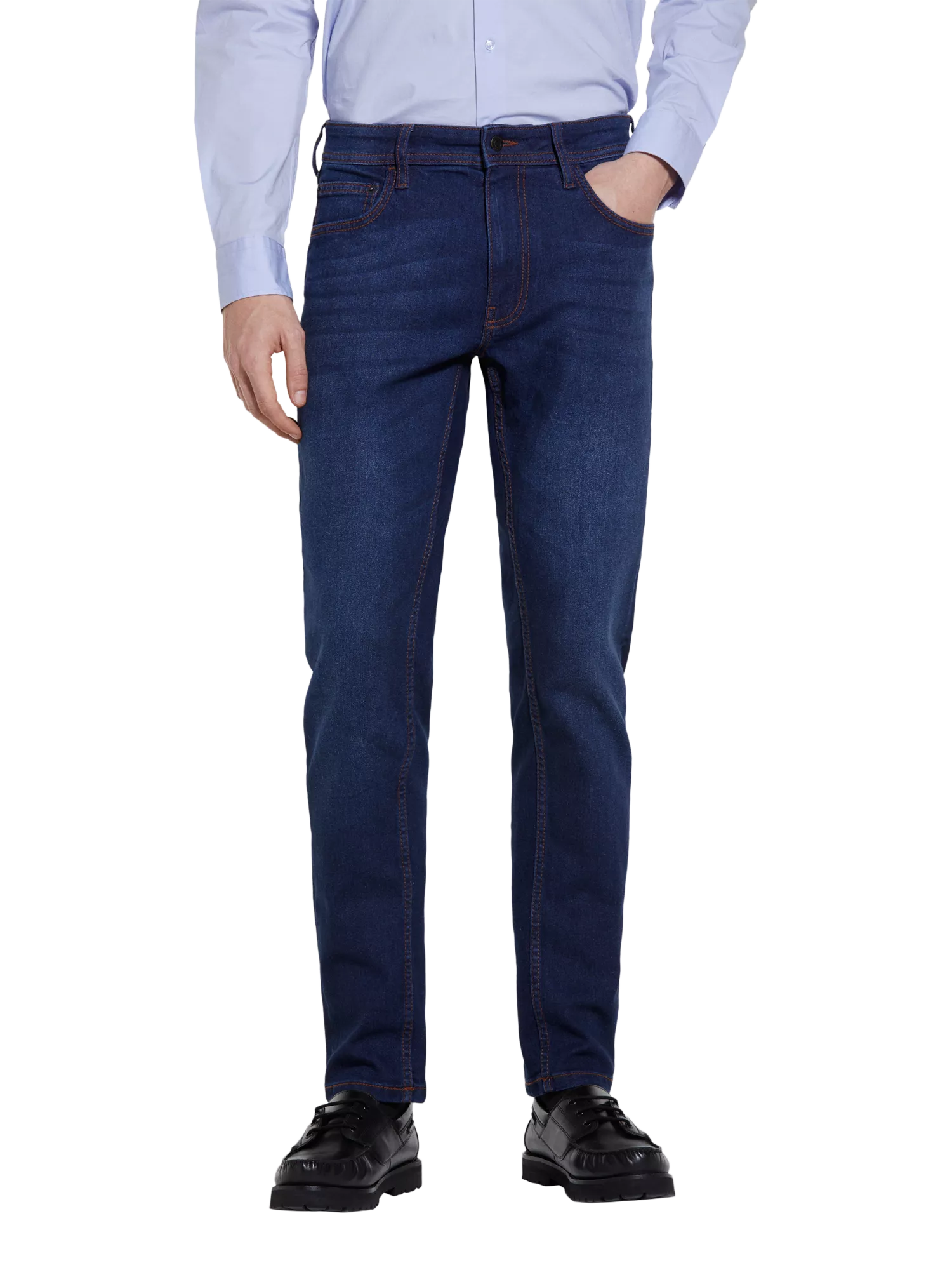 Experience stylish comfort with these slim fit jeans, crafted from stretch cotton denim. These versatile jeans offer a medium rise waist and slim leg, perfect for any casual occasion.