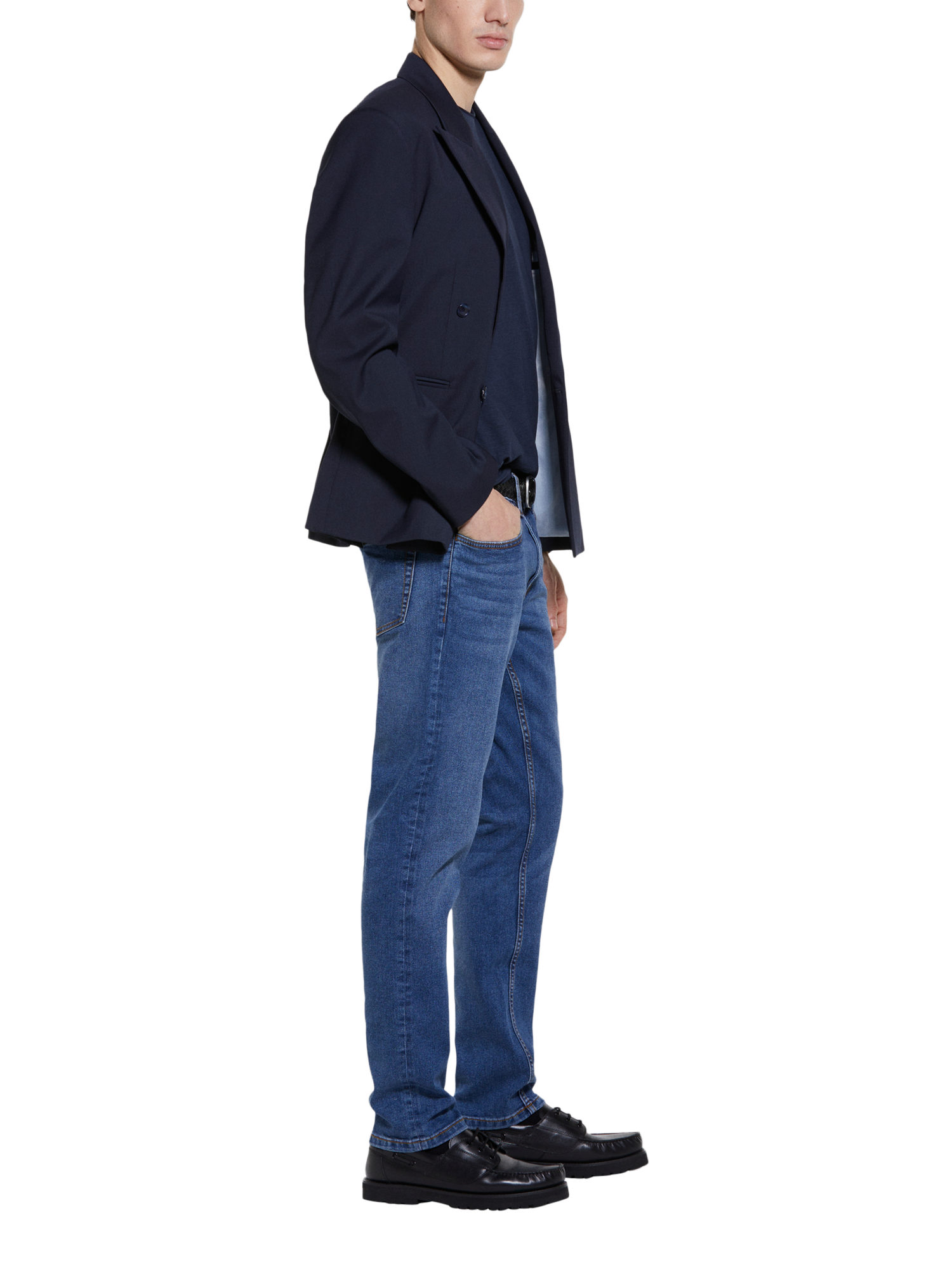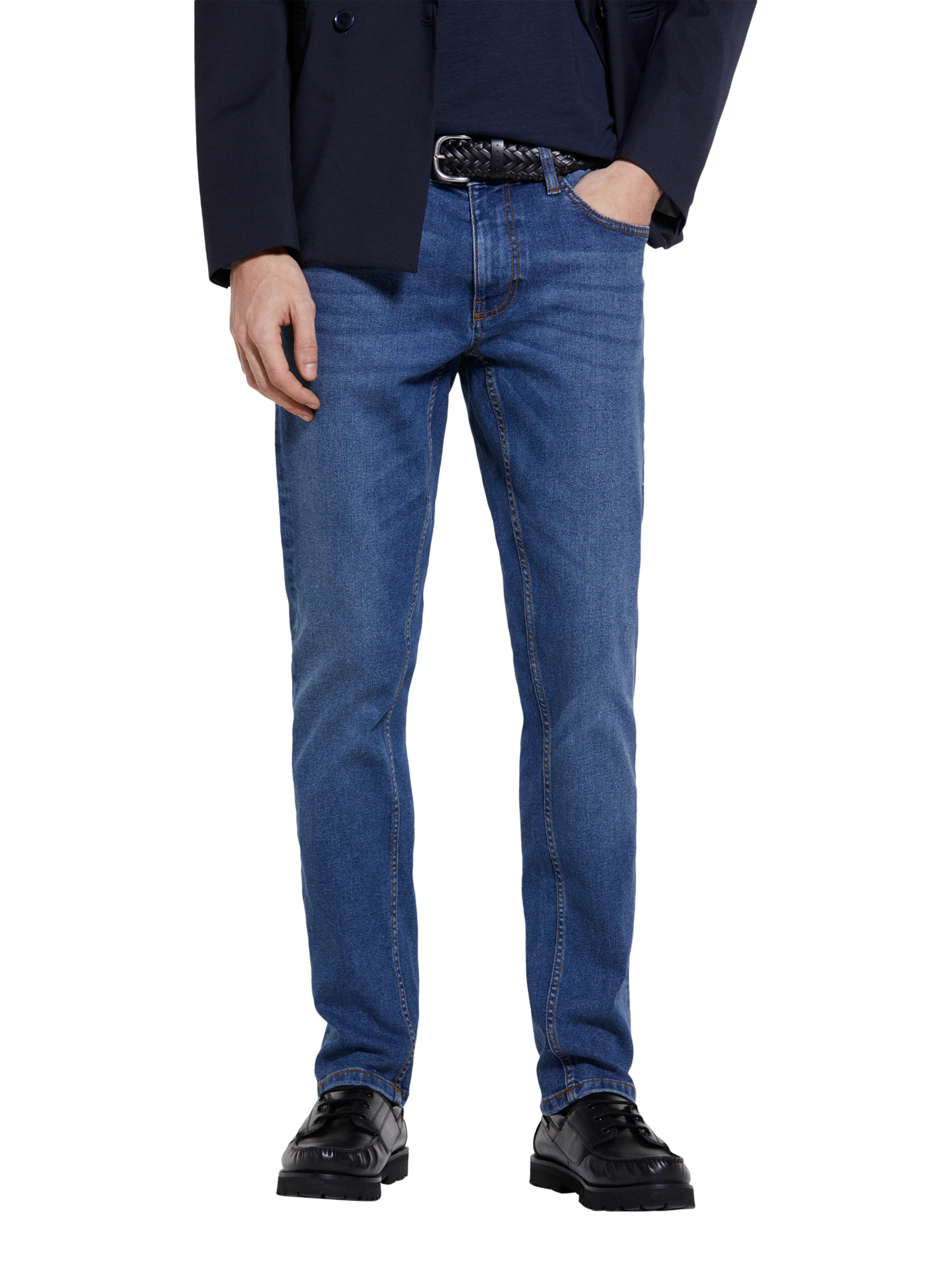 Experience stylish comfort with these slim fit jeans, crafted from stretch cotton denim. These versatile jeans offer a medium rise waist and slim leg, perfect for any casual occasion.