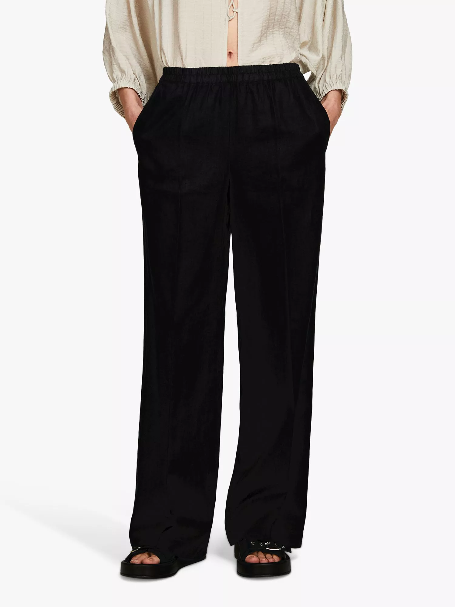 In a light and airy linen fabric, they can be worn with patterns and prints thanks to their plain design.